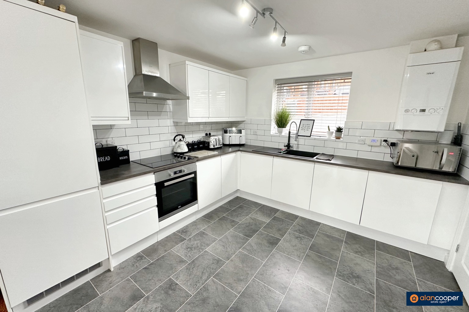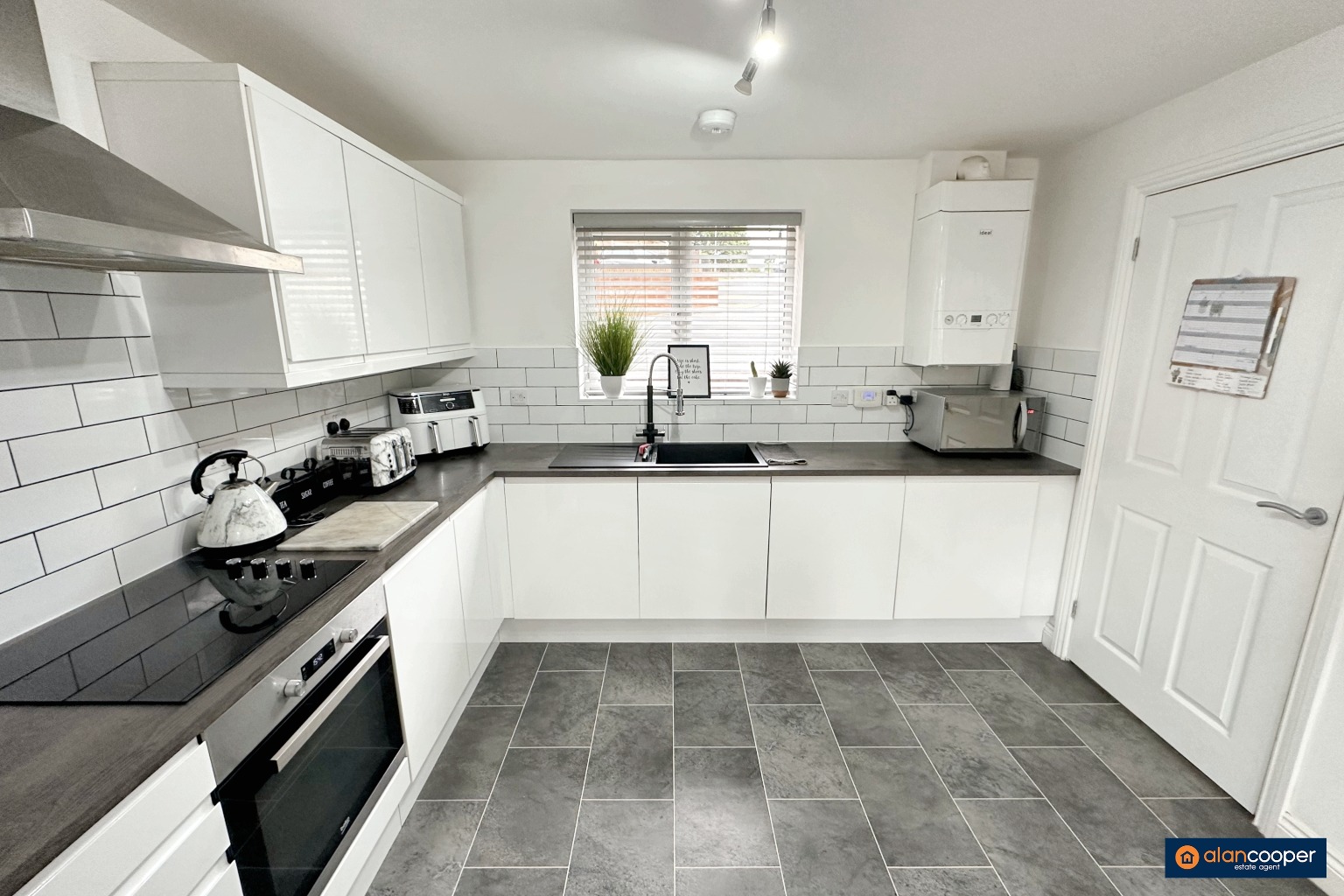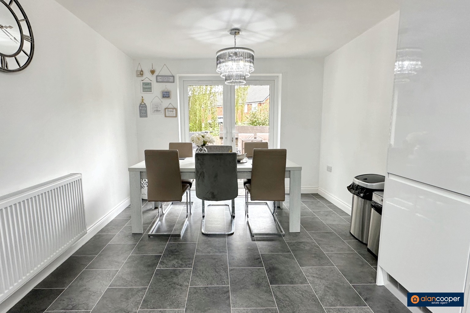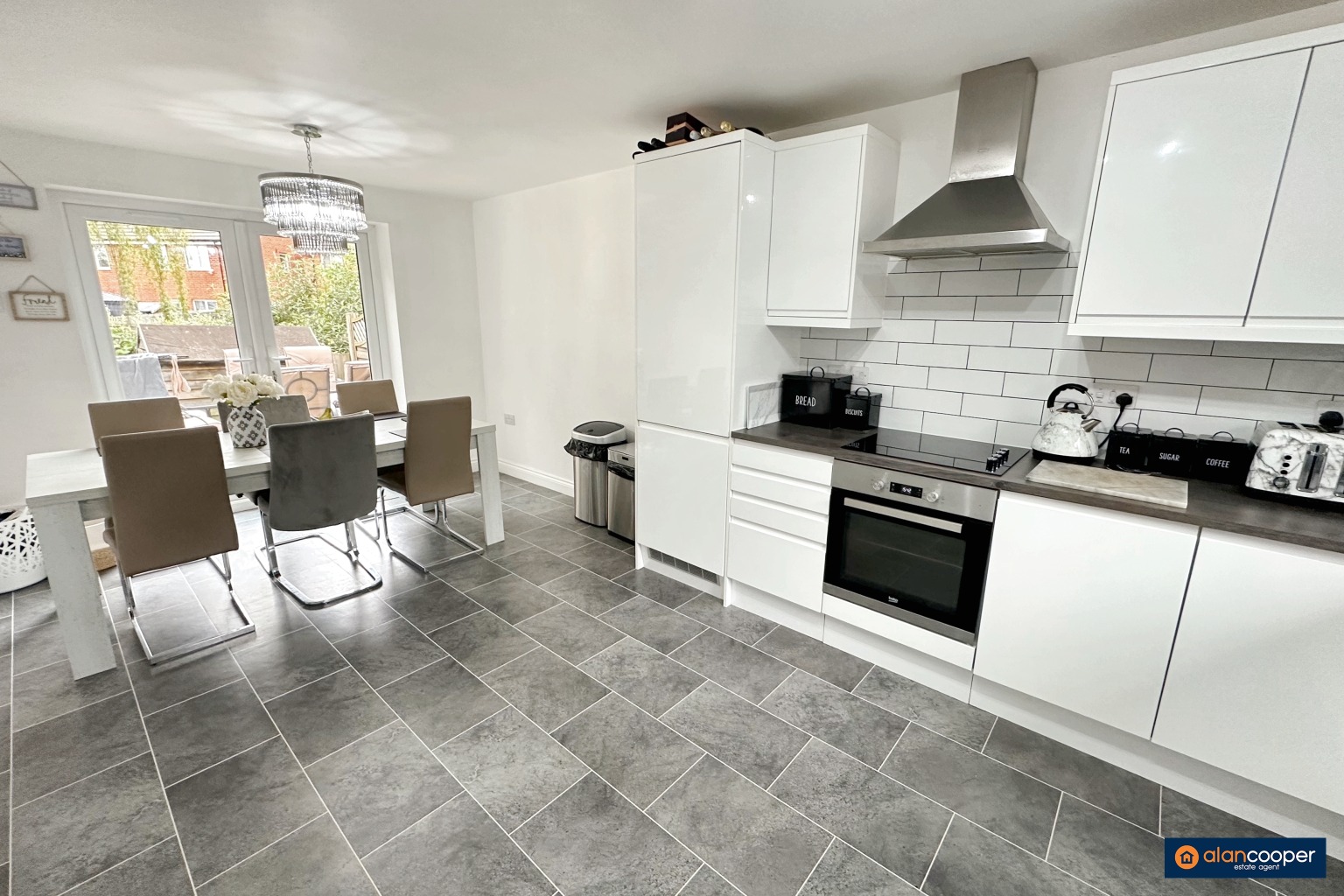 The heart of the home lies in the spacious open plan dining kitchen, thoughtfully designed to suit the needs of a growing family. Fitted with a built-in oven and hob, as well as integrated appliances, this kitchen is both stylish and functional. The double doors lead out to the rear garden, making it easy to extend your living space during warmer months.