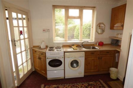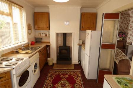 Having a single drainer sink with mixer tap, fitted base unit, additional base cupboards with work top and wall cupboards. Electric cooker point, plumbing for an automatic washing machine, solid fuel room heater and upvc sealed unit double glazed window.