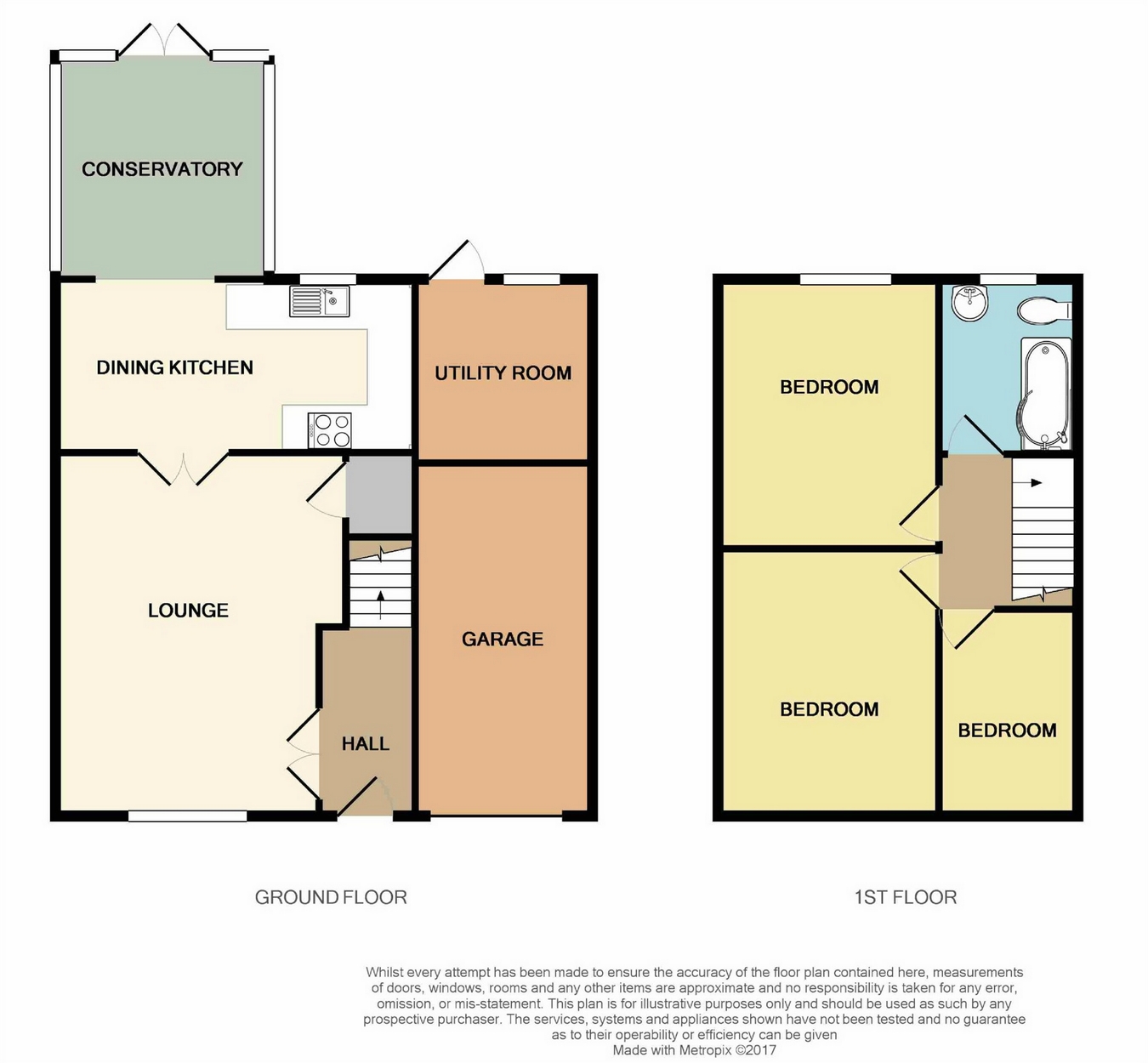 The accommodation briefly comprises: Hall, lounge, fitted dining kitchen and conservatory. Landing, three bedrooms and bathroom. Garage, driveway and gardens. EPC rating D.