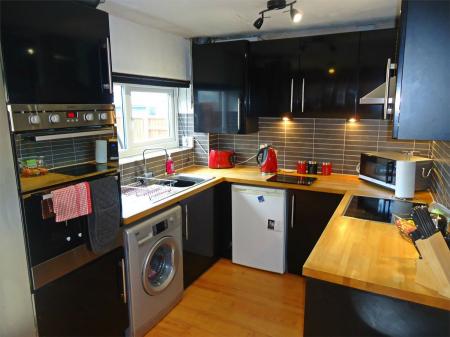 Having a single drainer sink with mixer tap, fitted base unit, additional base cupboards with work surfaces over and fitted wall cupboards. Built-in oven, hob, extractor hood and fridge. Plumbing for an automatic washing machine, central heating radiator and upvc sealed unit double glazed window.
