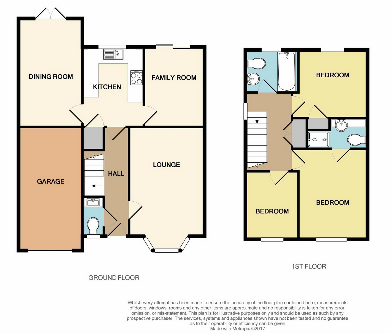 The accommodation briefly comprises: Through hall, cloakroom, lounge, dining room, kitchen and family room. Landing, three bedrooms, en-suite shower room and refitted bathroom. Attached garage and gardens. EPC rating C.