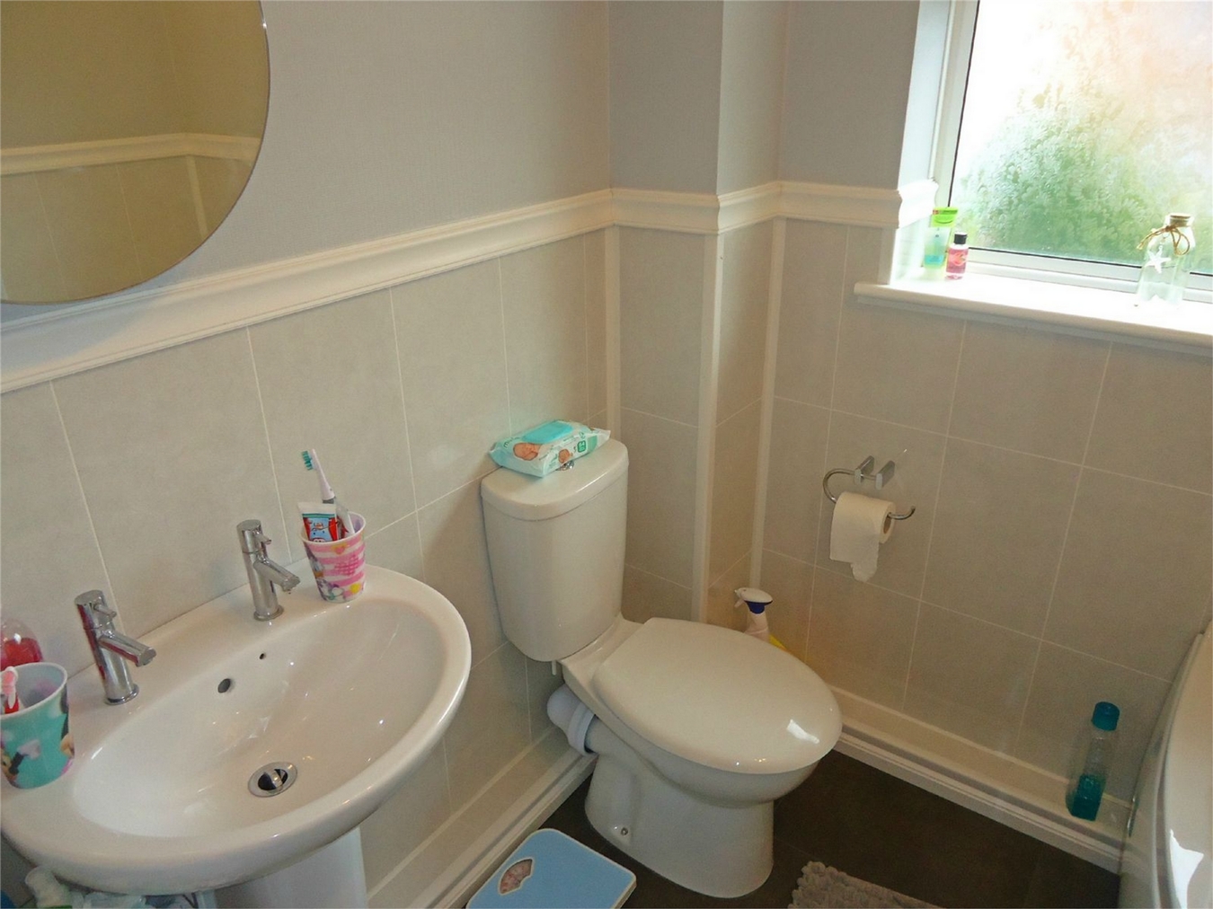 Being half tiled to the walls and having a white suite comprising a wash hand basin and low level WC. Central heating radiator and upvc sealed unit double glazed window.
