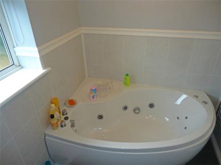 Being half tiled to the walls and having a white suite comprising a panelled spa bath, pedestal wash hand basin and low level WC. Heated towel rail and upvc sealed unit double glazed window.