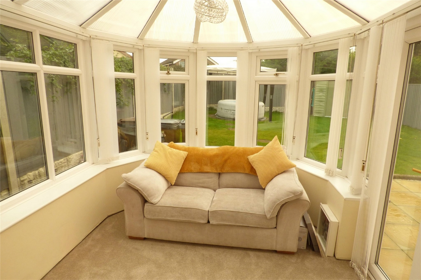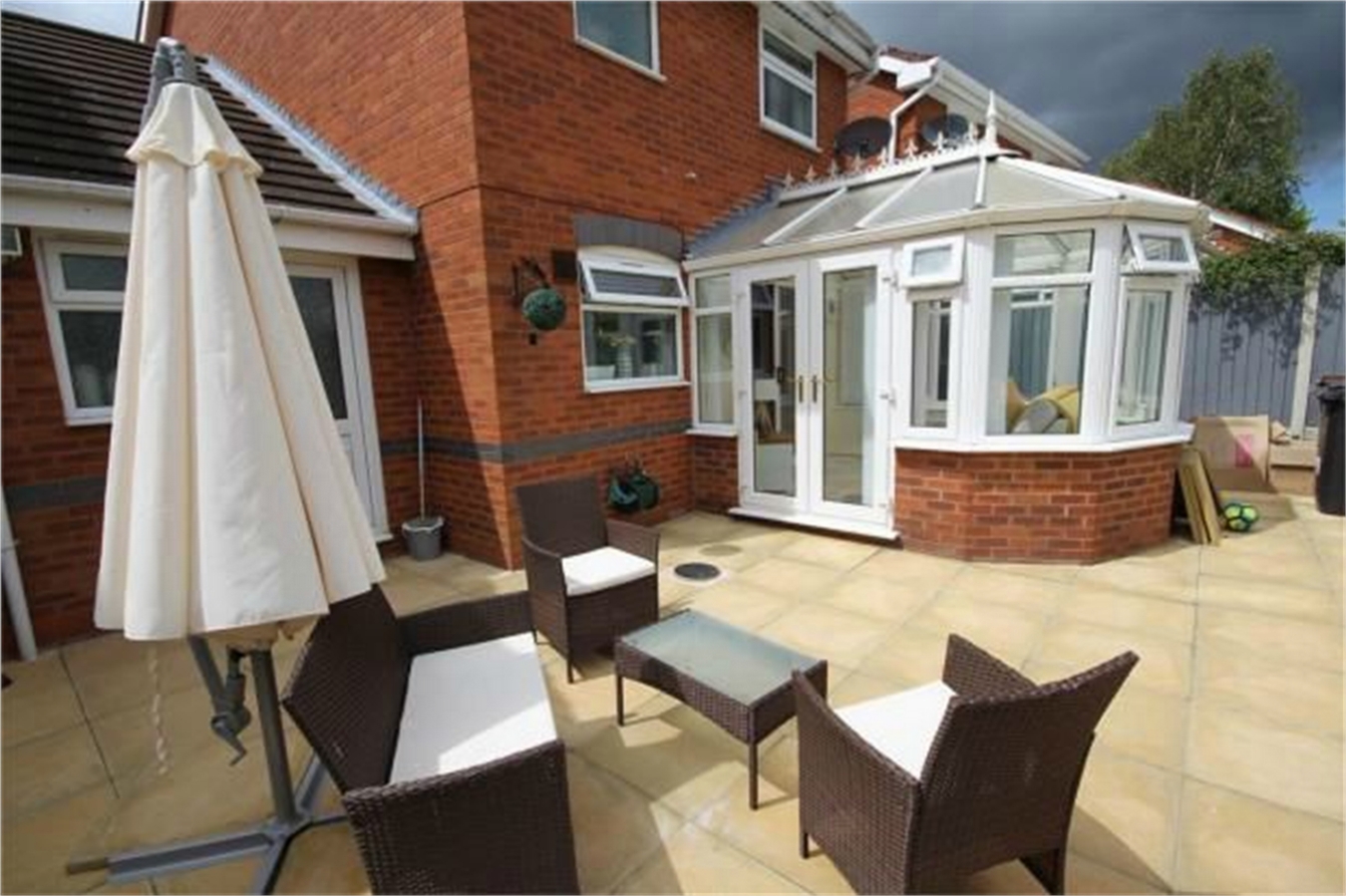 Having a brick built base, upvc sealed unit double glazed picture windows and double doors leading to the rear garden.