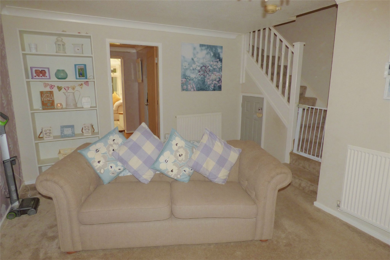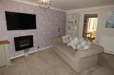 Having a wall mounted electric heater, two central heating radiators, staircase leading off to the first floor with cupboard below and upvc sealed unit double glazed bay window to the front elevation.