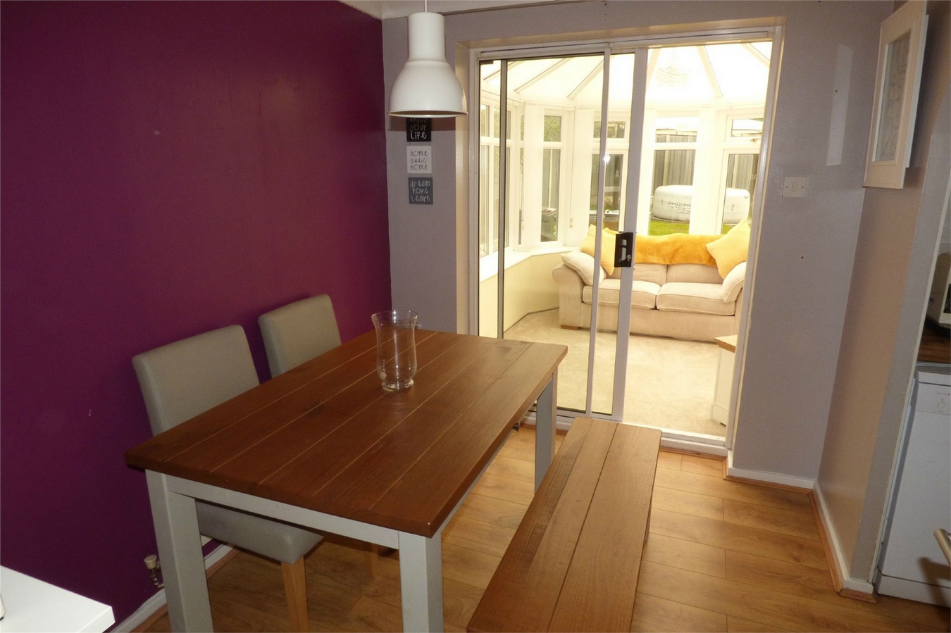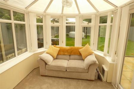 Having a central heating radiator, laminate wooden flooring and sealed unit double glazed patio doors leading to the conservatory.