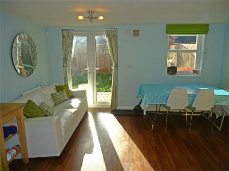 Spacious open plan dining kitchen having a single drainer stainless steel sink with mixer tap, fitted base unit, additional base cupboards and drawers with work surfaces over and fitted wall cupboards. Built-in oven, hob and extractor hood. Plumbing for an automatic washing machine, three central heating radiators, large built-in storage cupboard, upvc sealed unit double glazed doors leading to the rear garden.