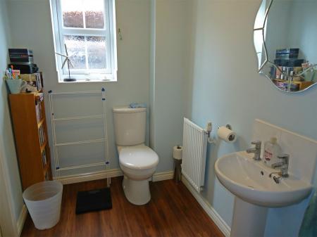 This combined guests cloakroom is approached off the hallway, but also has access off the third bedroom, therefore providing a useful en-suite facility. Having a white suite comprising a pedestal wash hand basin and low level WC. Central heating radiator and upvc sealed unit double glazed window.