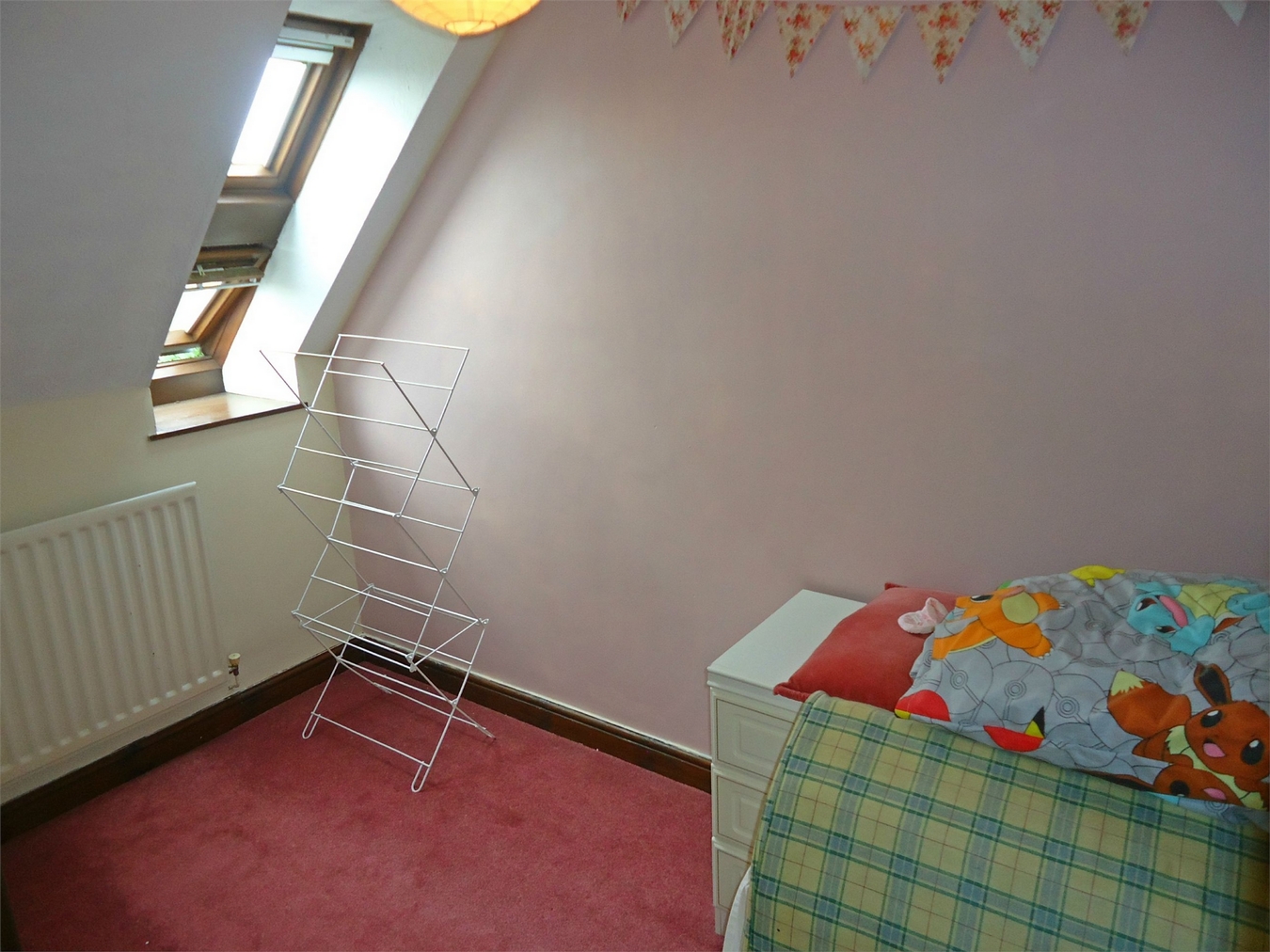 Having a fitted wardrobe, storage into the eves, and three double glazed windows.