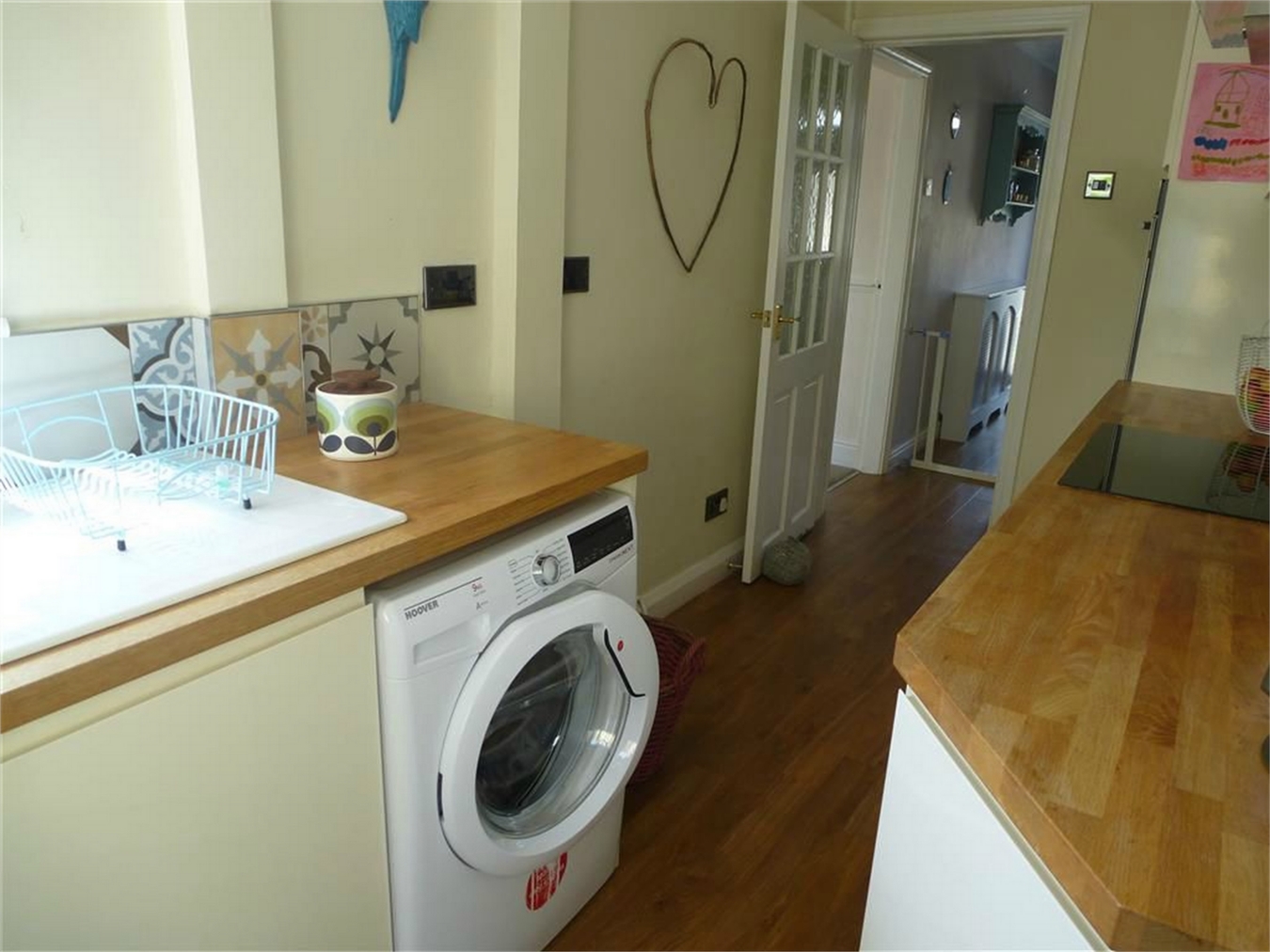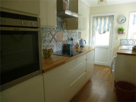 Having a single drainer sink with mixer tap, fitted base unit, additional base cupboards with work surfaces over and fitted wall cupboards. Built-in oven, hob and extractor hood. Plumbing for an automatic washing machine, central heating radiator, upvc sealed unit double glazed dual aspect widows and rear entrance door.