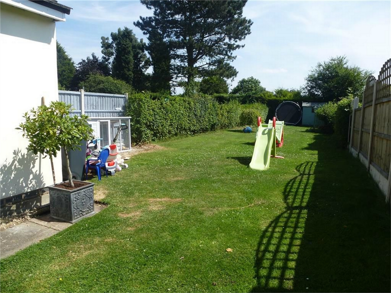 Foregarden offering ample motor car hardstanding and good sized rear garden, which has a patio area and a long lawn.