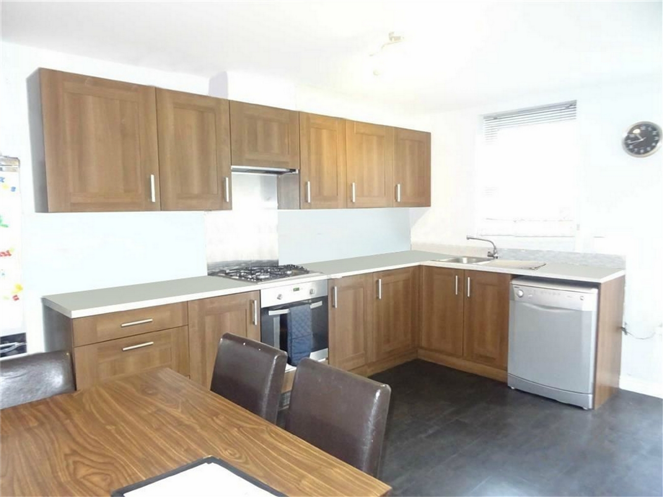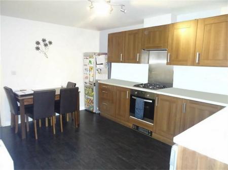 Having a one and a half bowl single drainer stainless steel sink with mixer tap, fitted base unit, additional base cupboards with working surfaces over and fitted wall cupboards. Built-in oven, hob and extractor hood. Plumbing for an automatic washing machine, built-in cupboard, Ideal gas fired boiler, two central heating radiators, plinth heater, half glazed rear door and upvc sealed unit double glazed window.