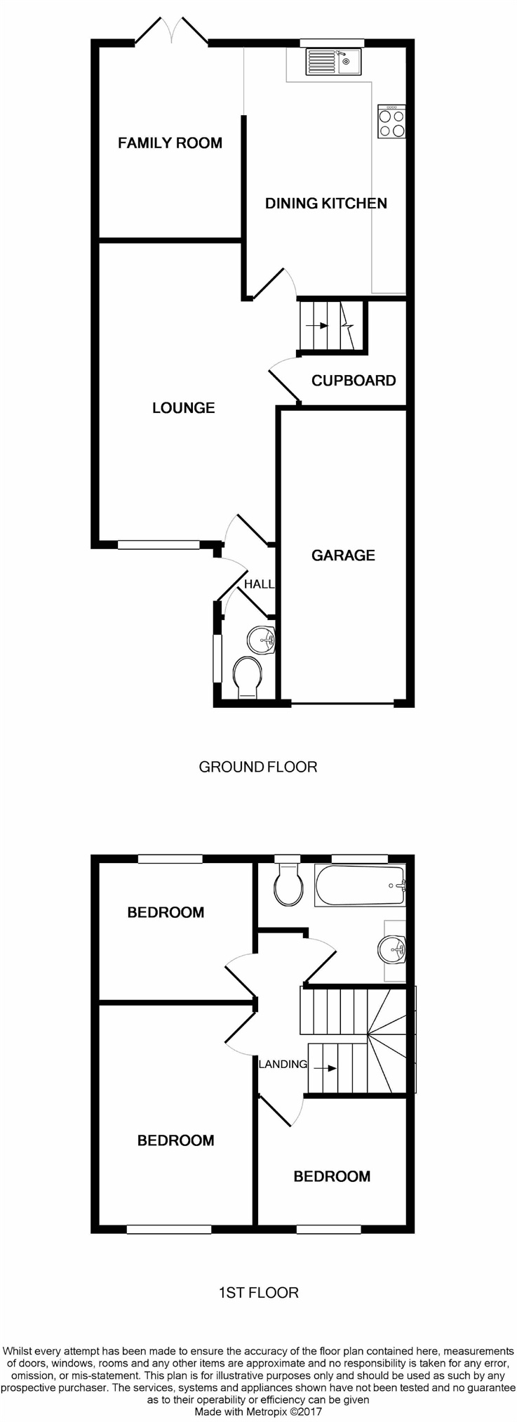 Briefly comprising: Hall, guests cloakroom, delightful lounge and an open family dining kitchen. Landing, three bedrooms and modern refurbished bathroom. Garage, full width block paved driveway and neat rear garden. EPC rating C.