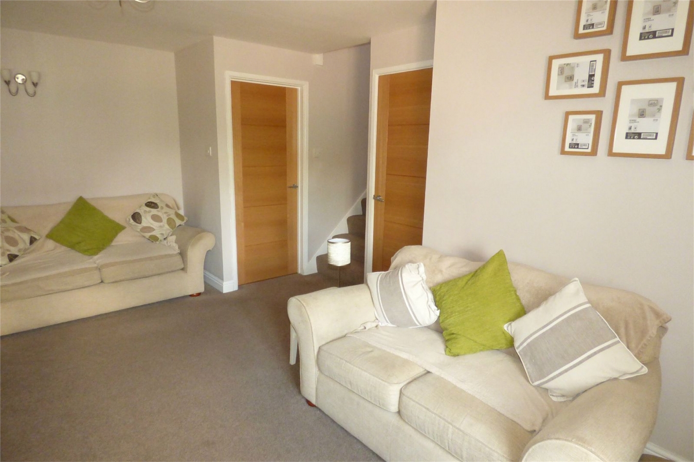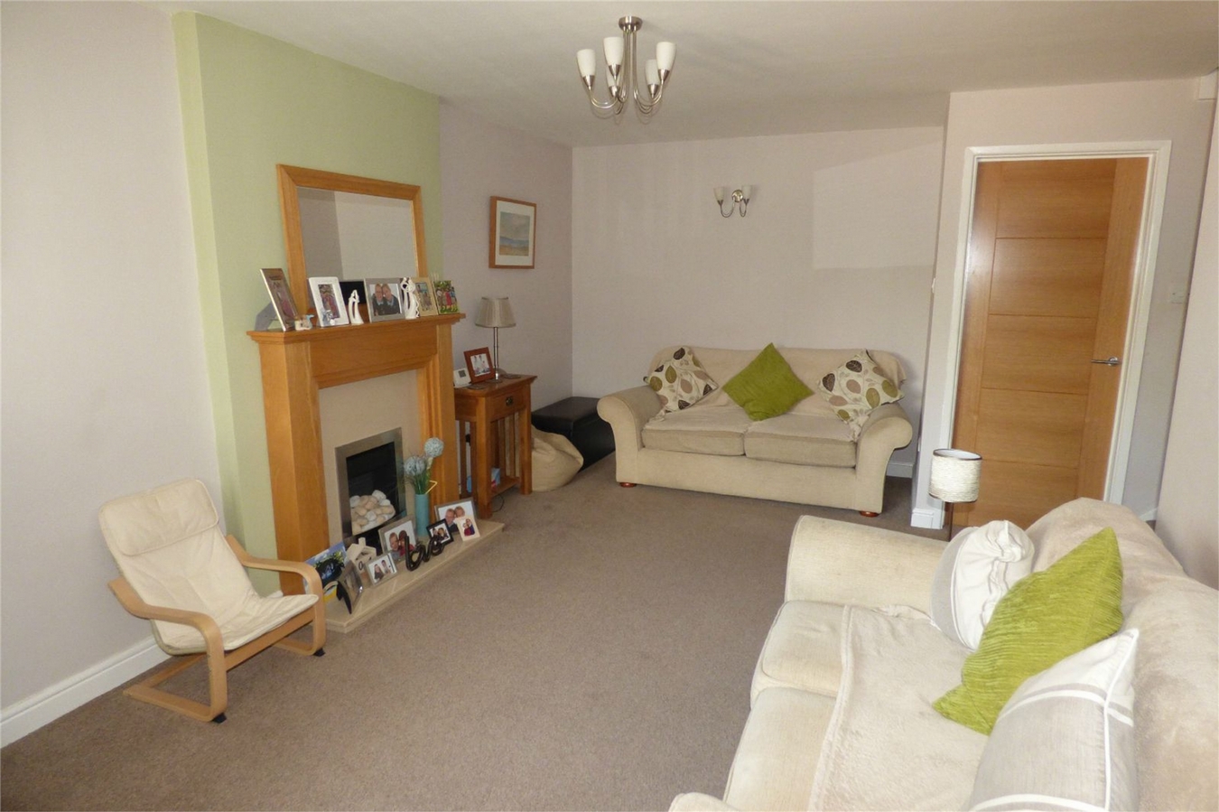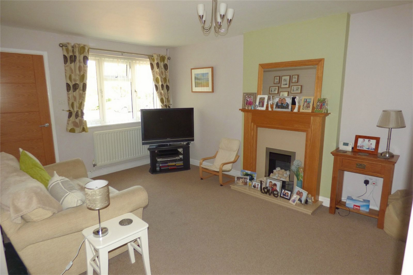 Having an attractive feature fireplace housing a living flame gas fire, double central heating radiator, staircase off the first floor with cupboard below and upvc sealed unit double glazed window.