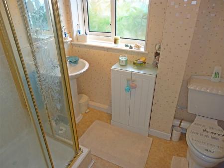 Having a white suite comprising a shower cubicle, pedestal wash hand basin and low level WC. Double central heating radiator and upvc sealed unit double glazed window.