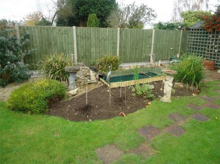 Loose stone foregarden with inset planting. There is also a possible motor car draw-on, albeit presently with no drop kerb. The rear garden, which is not overlooked and backs onto allotments, has paving, decking, lawn and well stocked flower beds together with a small fish pond. Large garden shed with covered work area.