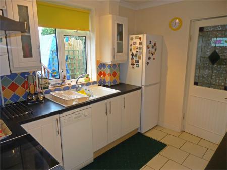 Having a one and a half bowl single drainer sink with mixer tap, fitted base unit, additional base cupboards with work surfaces over and fitted wall cupboards. Gas cooker point, central heating radiator, tiled flooring, Vaillant gas fired boiler and upvc sealed unit double glazed window.