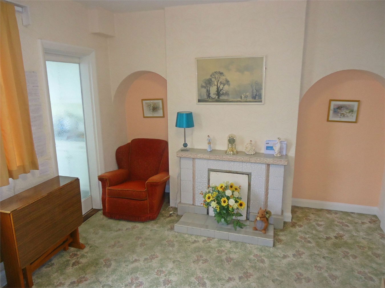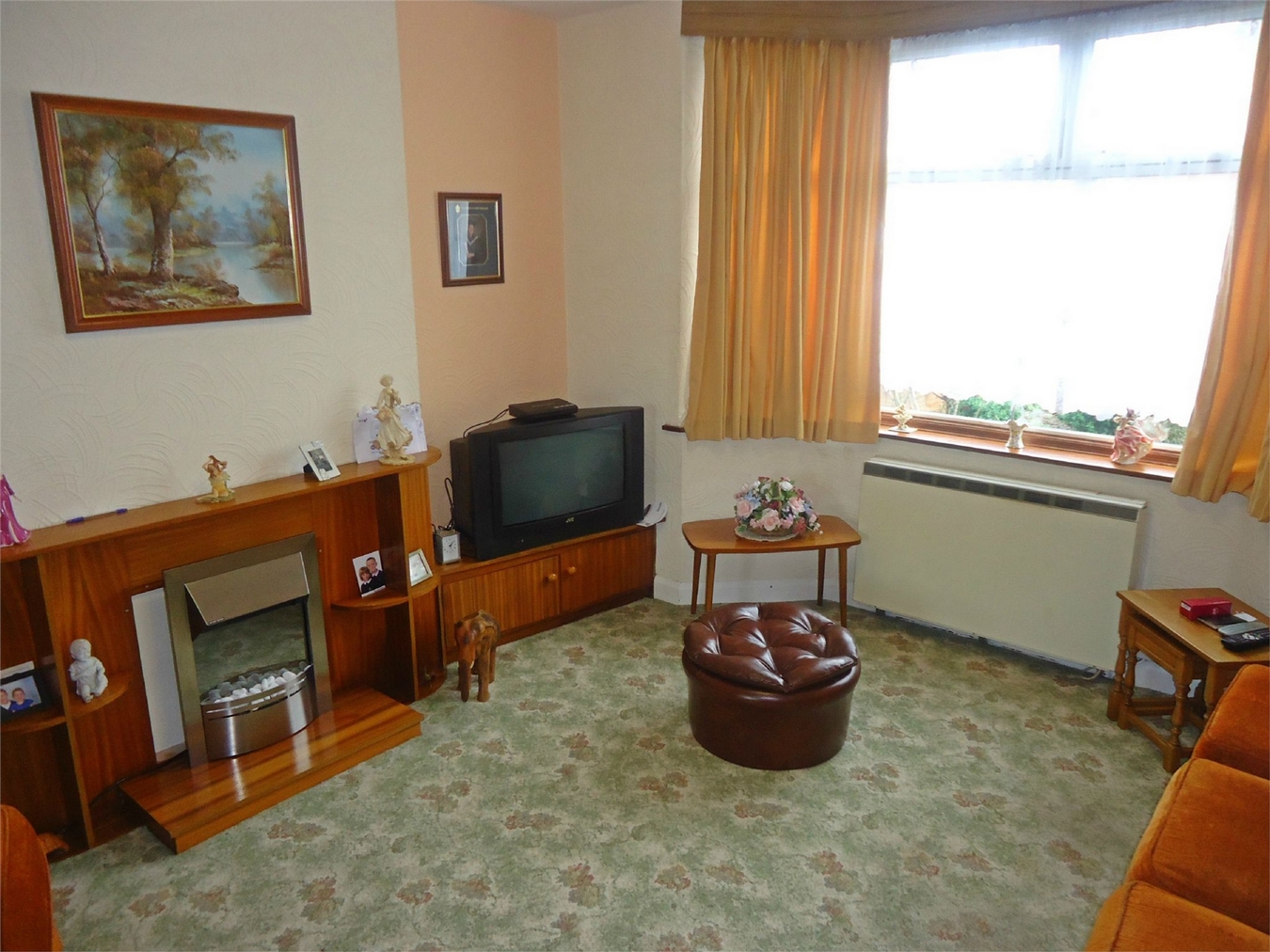 Having a fireplace, electric storage heater and sealed unit double glazed bay window.