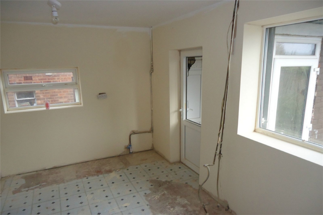 With upvc sealed unit double glazed dual aspect windows and double doors leading to the rear garden. There are no units whatsoever in the kitchen.