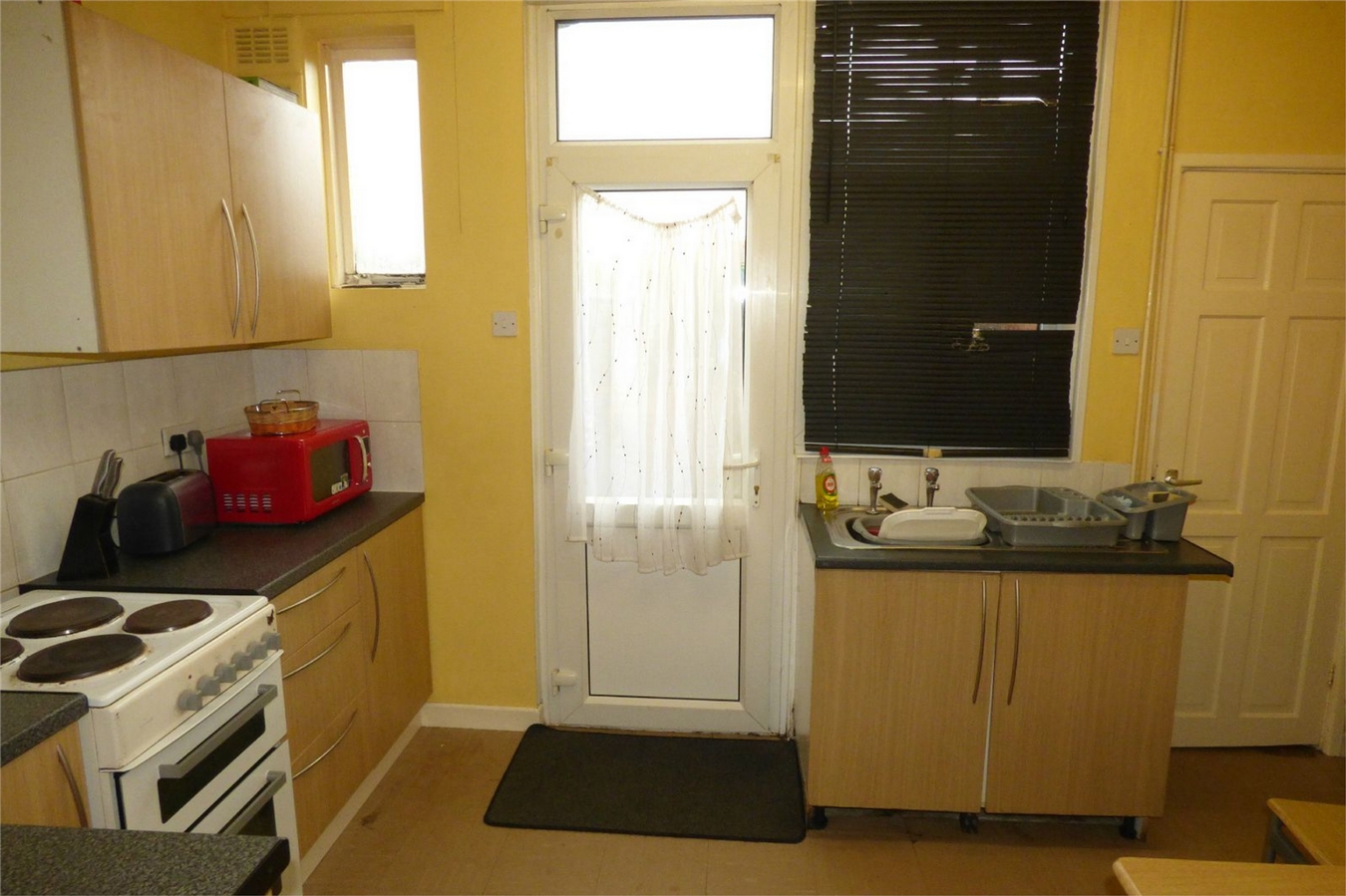 Having a single drainer stainless steel sink with fitted base unit, additional base cupboards with work surfaces over and fitted wall cupboards. Electric cooker point, central heating radiator, single glazed window and rear entrance door.