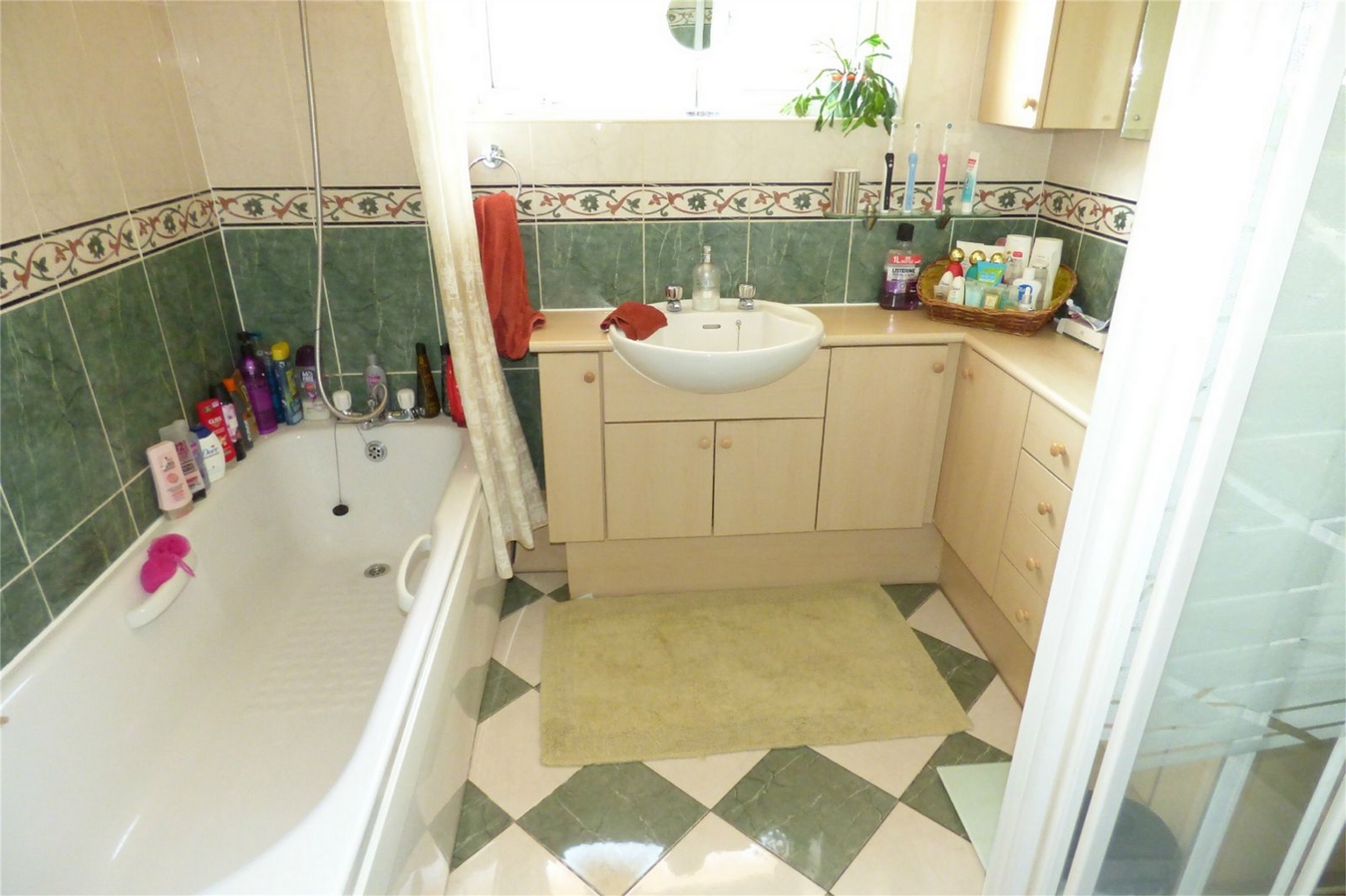 Being fully tiled to the walls and having a white suite comprising a panelled bath with mixer tap and shower attachment, separate shower cubicle and wash hand basin with cupboard below. Heated towel rail and upvc sealed unit double glazed window.