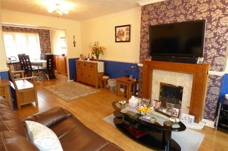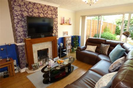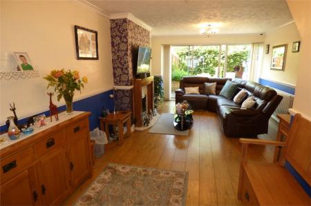Having an attractive feature fireplace housing a natural coal effect living flame gas fire, double central heating radiator, laminate wooden flooring and sealed unit double glazed patio doors leading to the rear garden.