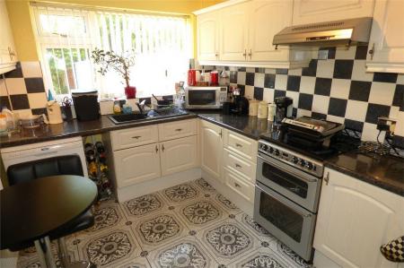 Having a single drainer sink with mixer tap, fitted base unit, additional base cupboards with work surfaces over and fitted wall cupboards. Gas cooker point, central heating radiator, door to the garage and upvc sealed unit double glazed window overlooking the rear garden.