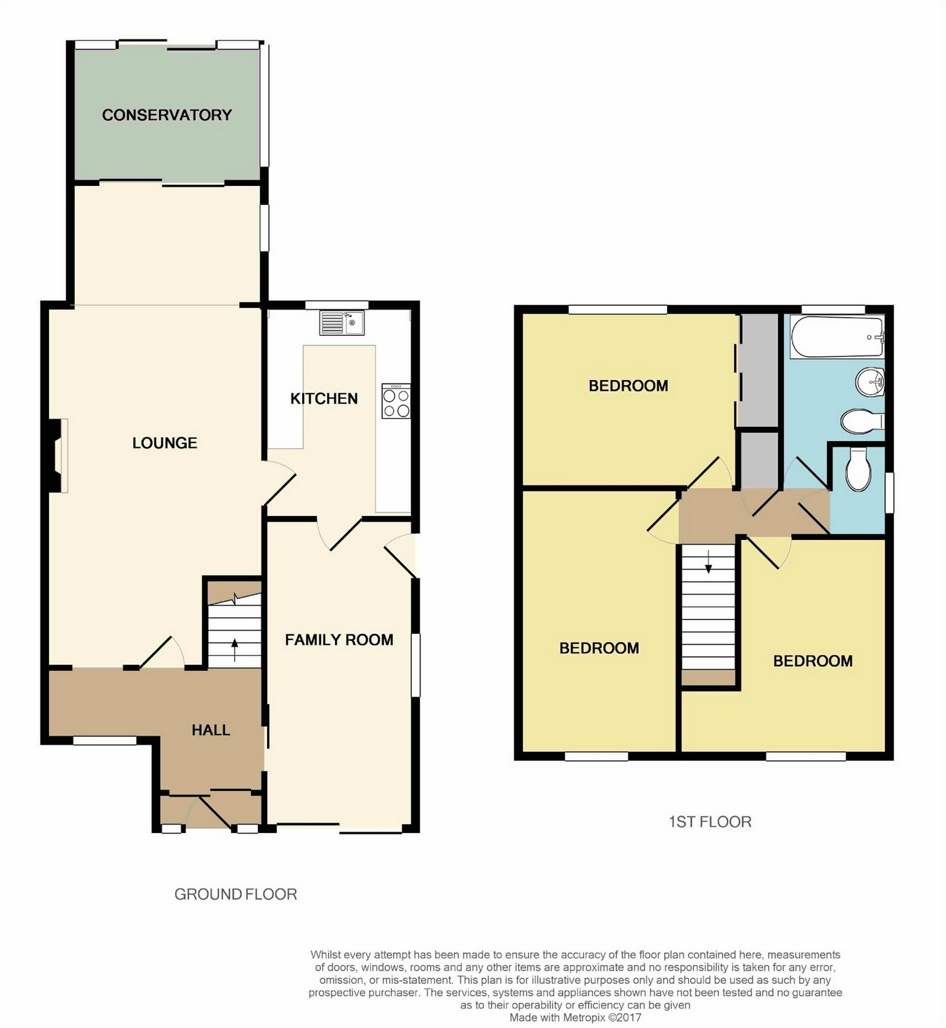 The accommodation briefly comprises: Porch, hall, lounge, conservatory, family room and kitchen. Landing, three double bedrooms, refitted bathroom and additional WC. Driveway and gardens. EPC rating D.