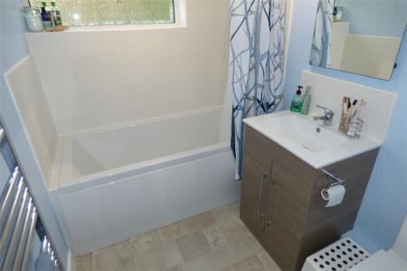 Having been refitted with a modern white suite comprising a panelled bath with shower over, wash hand basin with cupboard below and low level WC. Heated towel rail and upvc sealed unit double glazed window.