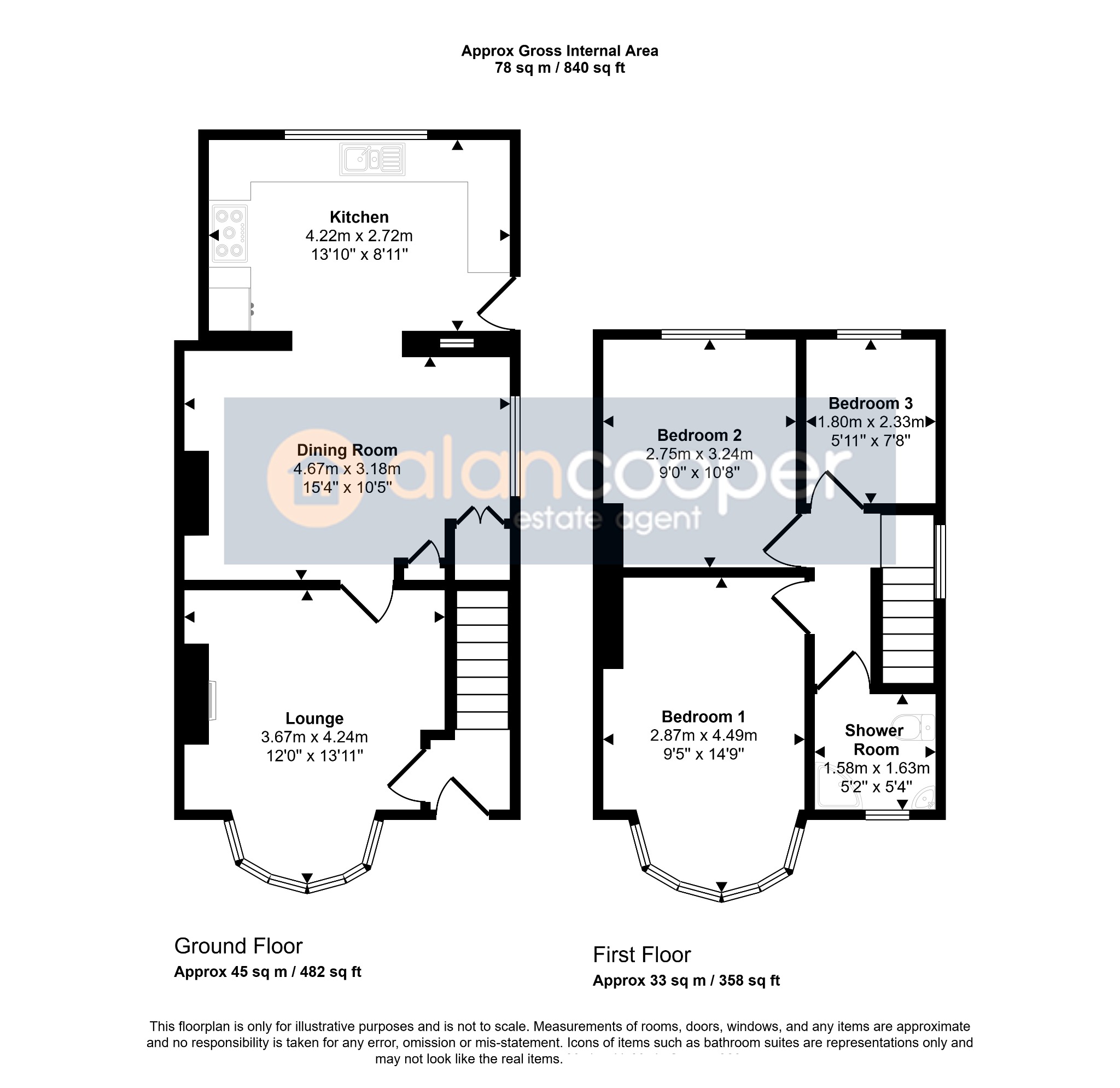 Agents NoteWe have not tested any of the electrical, central heating or sanitary ware appliances. Purchasers should make their own investigations as to the workings of the relevant items. Floor plans are for identification purposes only and not to scale. All room measurements and mileages quoted in these sales details are approximate. Subjective comments in these details imply the opinion of the selling Agent at the time these details were prepared. Naturally, the opinions of purchasers may differ. These sales details are produced in good faith to offer a guide only and do not constitute any part of a contract or offer. We would advise that fixtures and fittings included within the sale are confirmed by the purchaser at the point of offer. Images used within these details are under copyright to Alan Cooper Estates and under no circumstances are to be reproduced by a third party without prior permission.