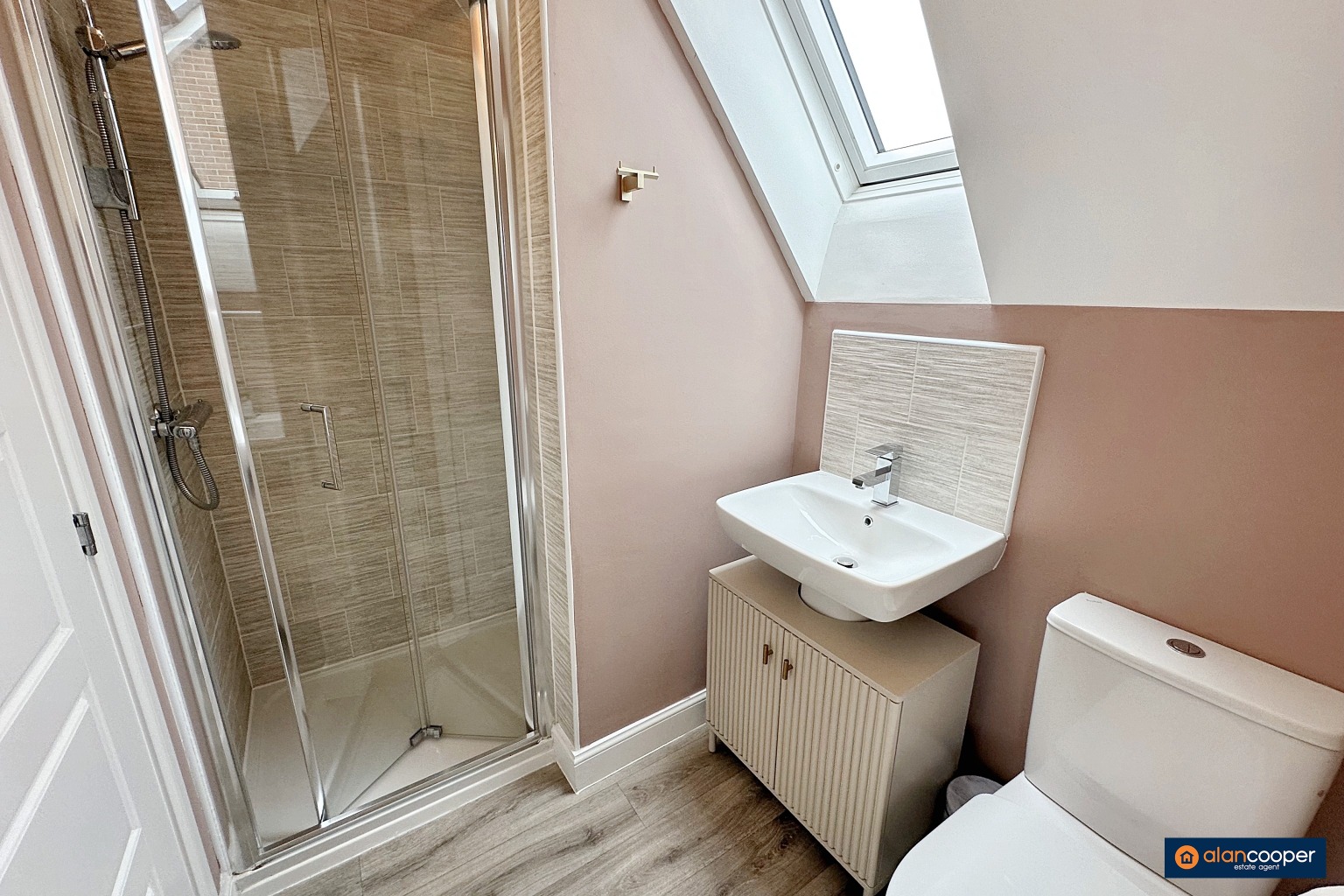 En-Suite Shower RoomThis delightful Jack and Jill style on suite is part tiled to the walls and has a white suite comprising a shower cubicle, pedestal wash and basin and a low level WC. Central heating radiator and UPVC sealed unit double glazed Velux window.
