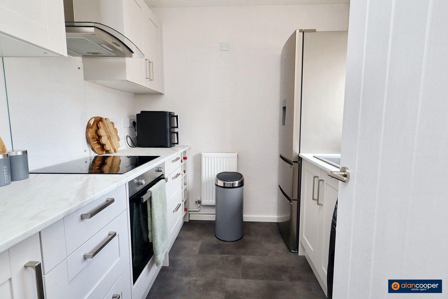 Refitted Kitchen8' 3" x 7' 5"This modern refitted kitchen has been designed to a high standard with an inset single drainer sink unit with mixer tap, fitted base unit, additional base cupboards and drawers with work surfaces and wall cupboards. Built-in oven, hob and extractor. Plumbing for an automatic washing machine and space for a fridge freezer. Central heating radiator and upvc sealed unit double glazed window.