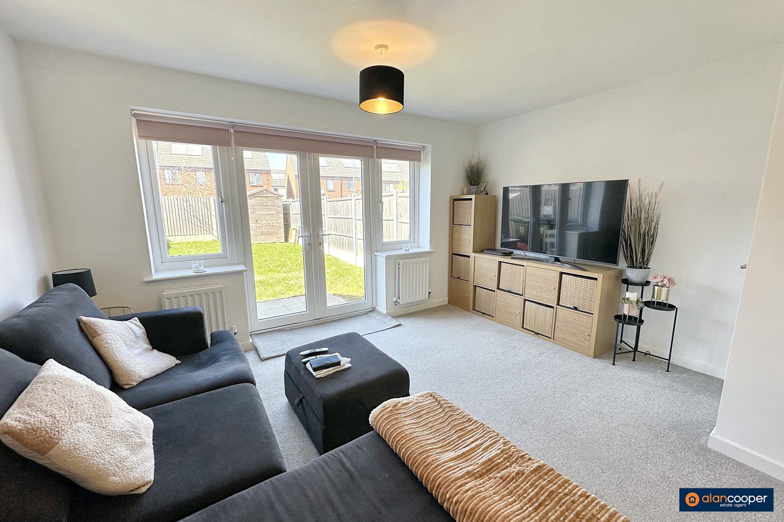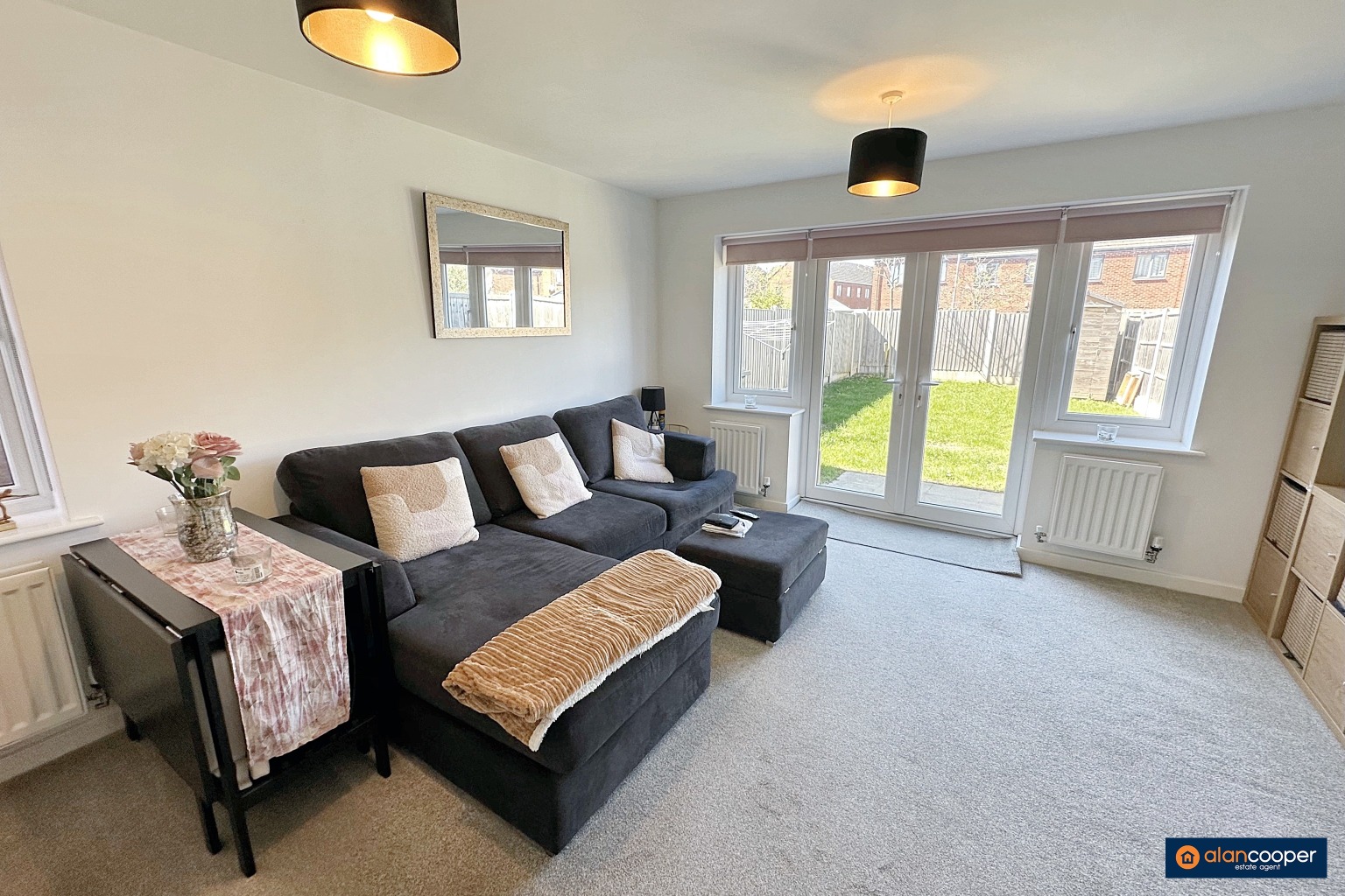 Lounge13' 9" x 14' 10"Having three central heating radiators, cupboard under the staircase, upvc sealed unit double glazed dual aspect windows and double doors leading to the rear garden.