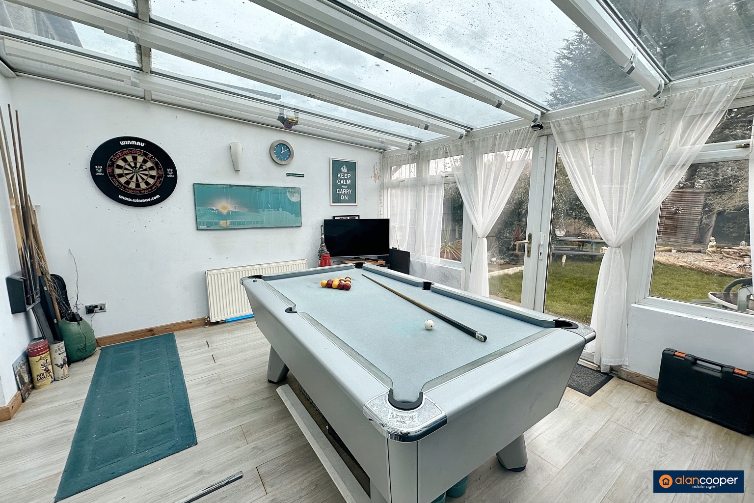 Making your way through, you'll discover a kitchen boasting a built-in oven and hob. Meal preparation becomes a breeze in this efficiently designed space. However, the standout feature of this property lies just beyond the kitchen - a spacious conservatory offering versatile living space. With glazed doors opening to the garden, this area seamlessly blends indoor and outdoor living, providing the perfect spot for entertaining guests or simply unwinding while enjoying the views of the garden.