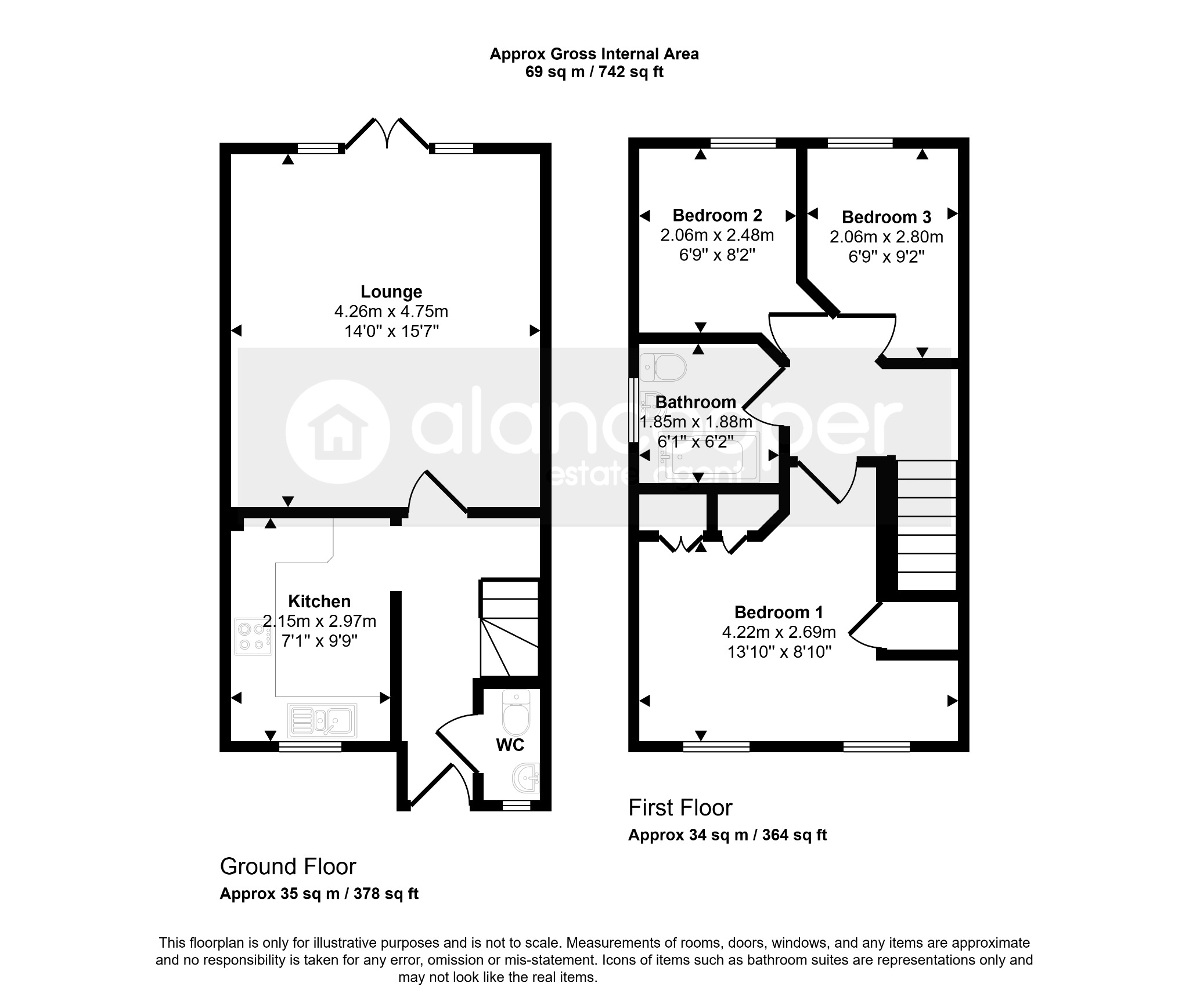 Agents NoteWe have not tested any of the electrical, central heating or sanitary ware appliances. Purchasers should make their own investigations as to the workings of the relevant items. Floor plans are for identification purposes only and not to scale. All room measurements and mileages quoted in these sales details are approximate. Subjective comments in these details imply the opinion of the selling Agent at the time these details were prepared. Naturally, the opinions of purchasers may differ. These sales details are produced in good faith to offer a guide only and do not constitute any part of a contract or offer. We would advise that fixtures and fittings included within the sale are confirmed by the purchaser at the point of offer. Images used within these details are under copyright to Alan Cooper Estates and under no circumstances are to be reproduced by a third party without prior permission.