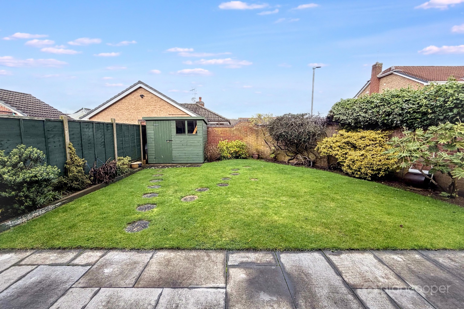 Externally, the property boasts a garage with direct access, complemented by a full-width driveway that provides ample hardstanding for multiple motor cars. The fully enclosed rear garden is a true highlight, featuring a patio area ideal for outdoor dining and relaxation, a well maintained lawn, and lovely floral borders that add colour and charm throughout the seasons. This outdoor space offers privacy and a safe environment for children to play.