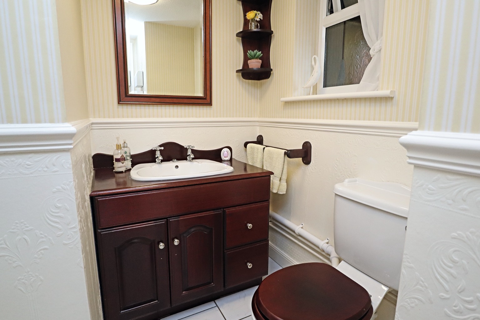 Guests CloakroomHaving a white suite comprising a wash hand basin with cupboard below and low level WC. Central heating radiator, tiled flooring and upvc sealed unit double glazed window.