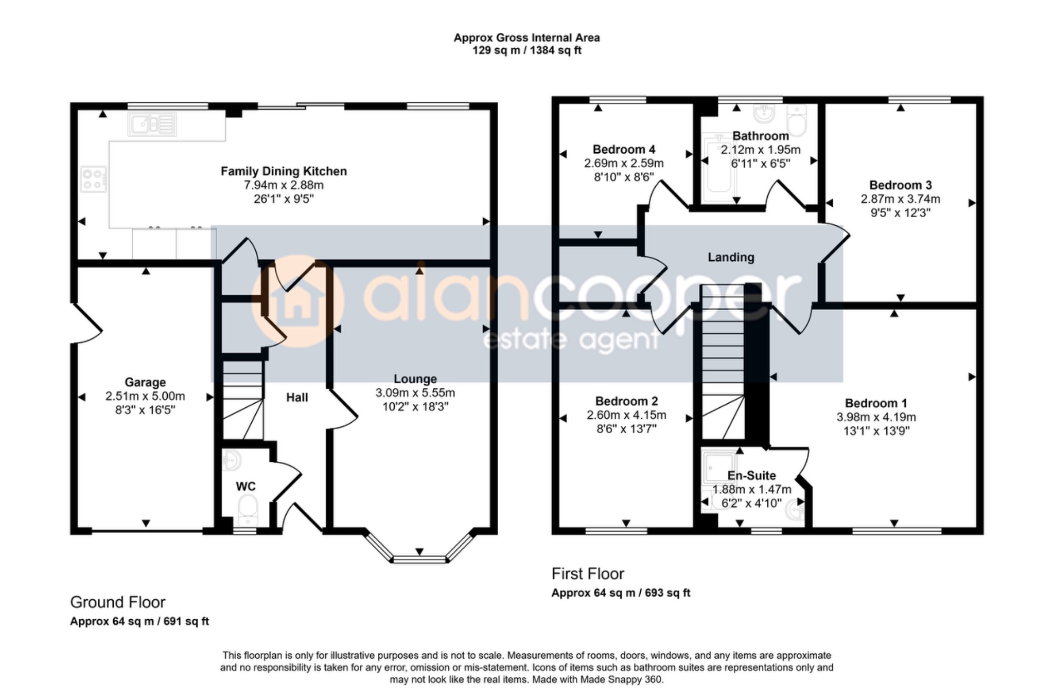 Agents NoteWe have not tested any of the electrical, central heating or sanitary ware appliances. Purchasers should make their own investigations as to the workings of the relevant items. Floor plans are for identification purposes only and not to scale. All room measurements and mileages quoted in these sales details are approximate. Subjective comments in these details imply the opinion of the selling Agent at the time these details were prepared. Naturally, the opinions of purchasers may differ. These sales details are produced in good faith to offer a guide only and do not constitute any part of a contract or offer. We would advise that fixtures and fittings included within the sale are confirmed by the purchaser at the point of offer. Images used within these details are under copyright to Alan Cooper Estates and under no circumstances are to be reproduced by a third party without prior permission.