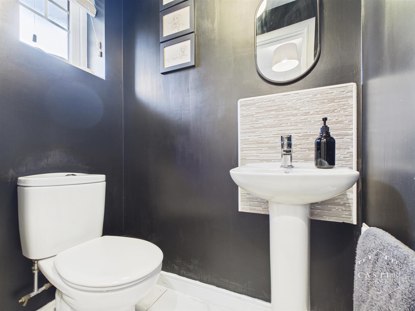 Guest Cloakroom - having low level w.c., pedestal wash hand basin, central heating radiator and upvc double glazed window with obscure glass to front.