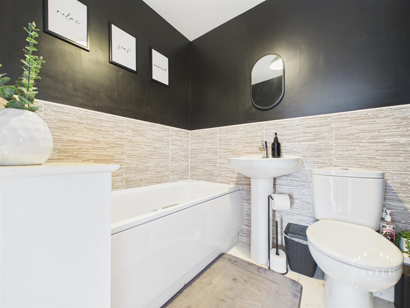 Bathroom - 2.29m x 1.55m (7'6 x 5'1 ) - having panelled bath, pedestal wash hand basin, low level w.c., extractor fan and ceramic tiled splashbacks.