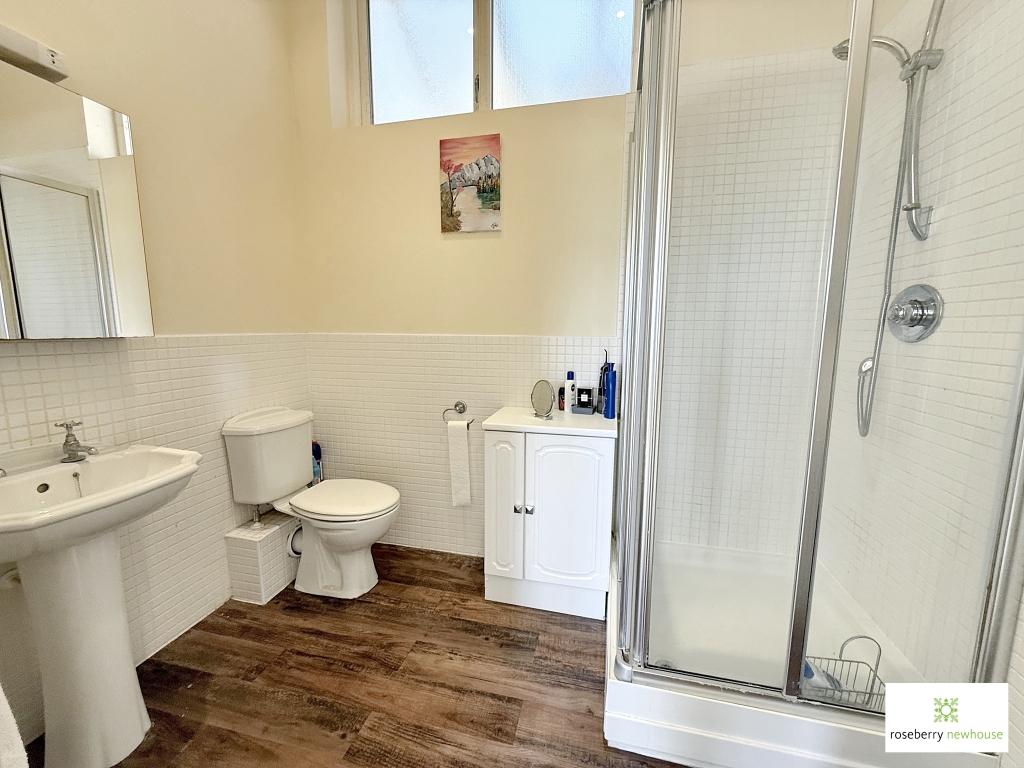 The kitchen is fitted with a range of contemporary units, integrated appliances and a breakfast bar, and it connects seamlessly with the main reception space, enhancing the open, sociable atmosphere. Two double bedrooms provide peaceful retreats, each offering generous fitted storage. The principal bedroom enjoys an en suite shower room and views towards the gardens and Cleveland Hills. A further study or occasional third bedroom sits adjacent to the hallway, offering flexibility for home working or guests. A family bathroom with both bath and shower over completes the internal layout.