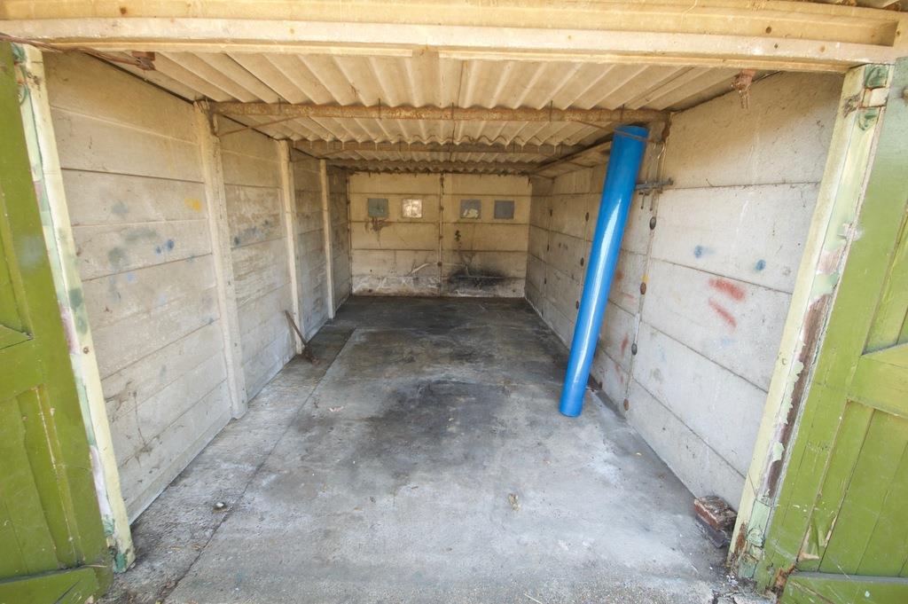 The garage measures 16' x 9'2" internally (slightly bigger than your average garage), and has double doors to the front. No power or lighting can be connected. The doors would benefit from repainting.