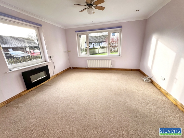 This well-presented end-of-terrace bungalow offers comfortable and energy-efficient living, featuring modern thermostatically controlled electric heating and solar panels. The accommodation includes two bedrooms, a shower room, and an extended kitchen, providing practical and versatile living space. Further benefits include a bright sun room overlooking the particularly good-sized gardens, an integral garage with an electrically operated roller door, and off-road parking. Offered with no forward chain, this appealing bungalow is ideal for those seeking a convenient and low-maintenance home.