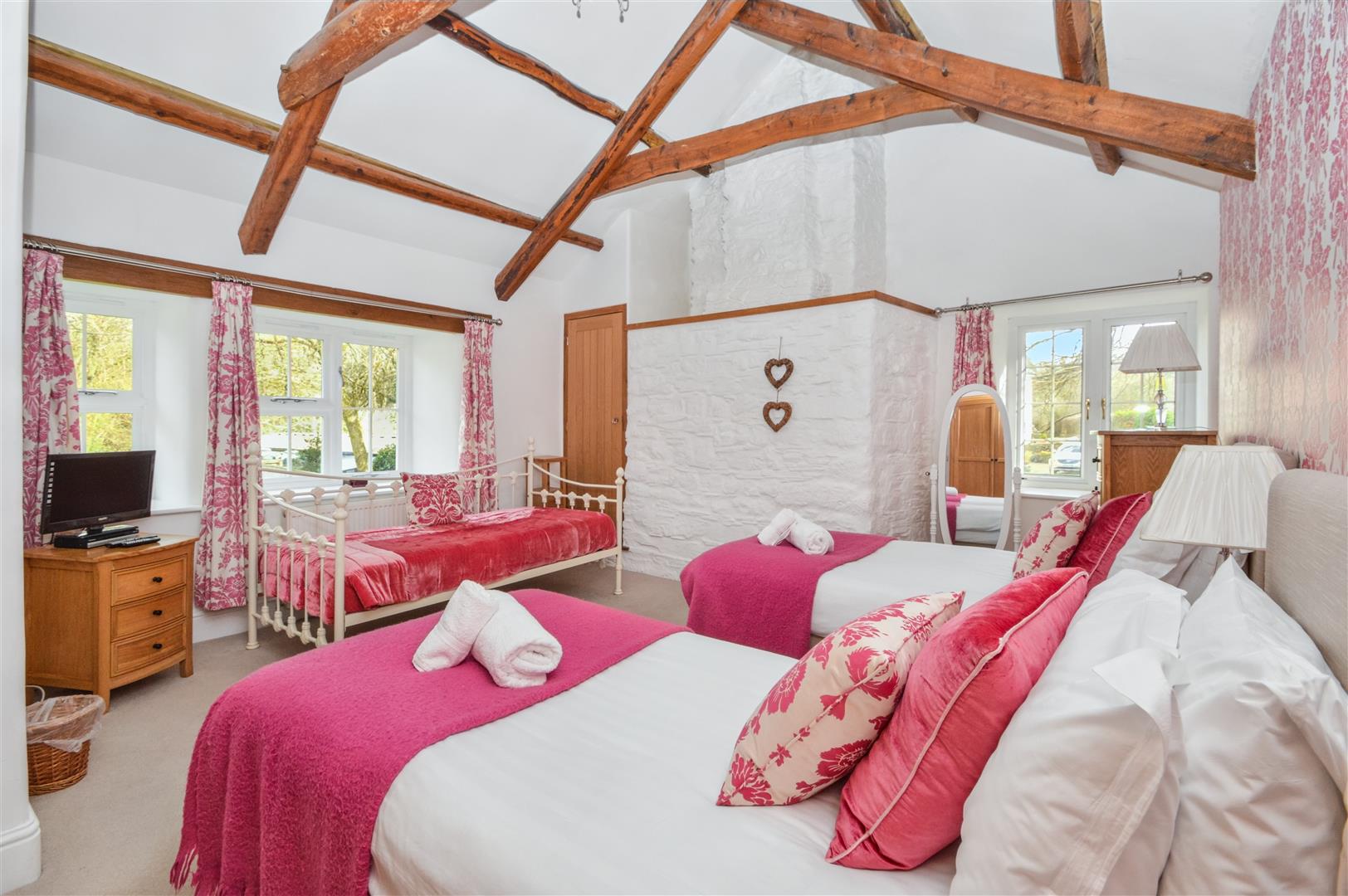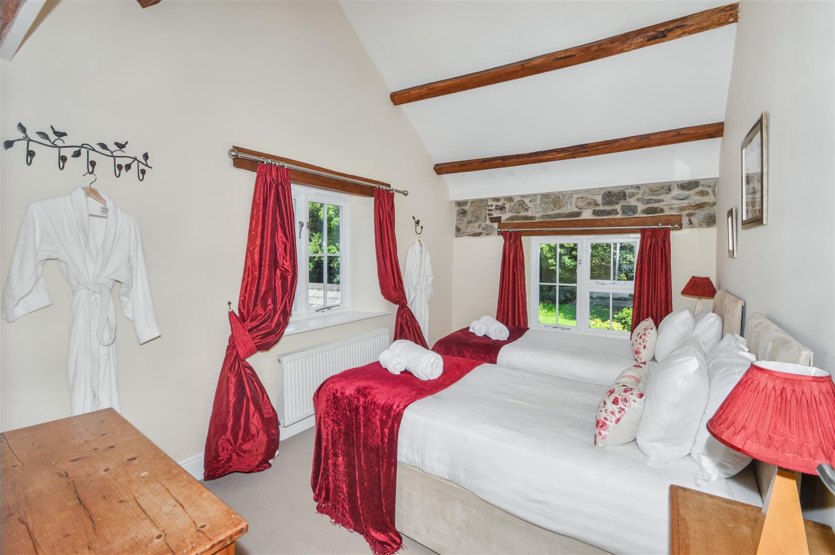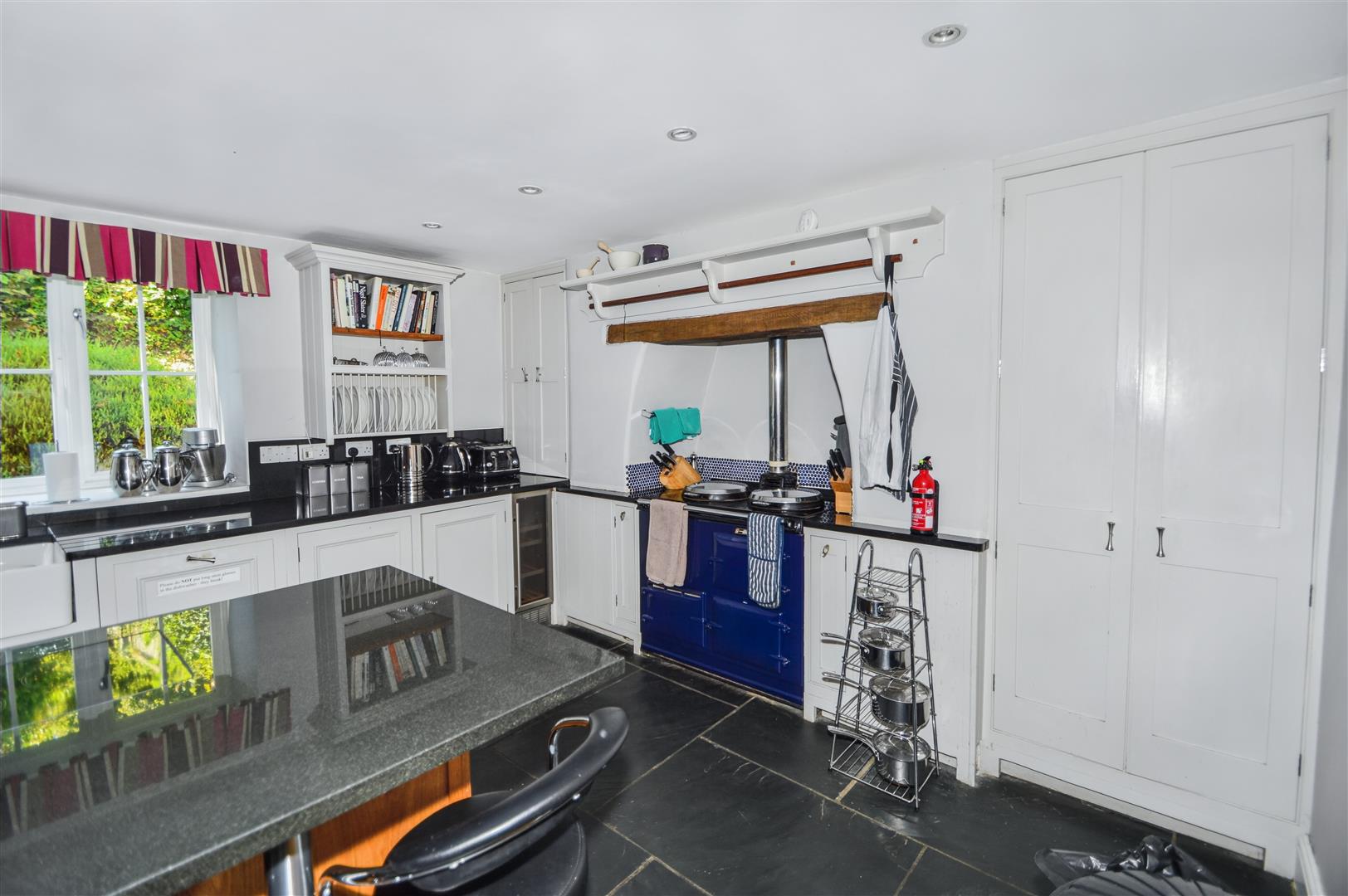Whitelady House is a substantial and most appealing characterful 6 bedroom, 3 reception country house which is currently being used as popular and successful holiday letting property which is generating a very good income. The original part of the property is believed to date back to 1600's with further extension in 1700's. The accommodation benefits from, oil fired central heating, double glazed windows, slate flagstone floors and exposed beamed ceilings and briefly comprises: Entrance porch slate flagstone floor and windows to either side, large solid Oak door opens to: Entrance hall; slate flagstone floor, window to the side, staircase to first floor. Bedroom 6; a dual aspect room with window to the side and French doors open onto the lawn and gravel terrace at the front of the house. En suite shower room; shower cubicle, W/C, contemporary vanity unit and wash hand basin, utility cupboard; space for washing machine and tumble dryer. Sitting room; feature stone fireplace with woodburning stove on a slate hearth, deep sill window seat to the front. Front entrance hall; second staircase, drawing room; a dual aspect room with windows to the side and front overlooking the terrace lawned gardens. Inglenook fireplace woodburning stove on a slate hearth and feature clome oven to the side. Dining room, a dual aspect room with windows to the side and rear, slate flagstone floor. Kitchen / Breakfast room; fitted solid wood shaker style base units under black granite worksurfaces. Integral Neff dishwasher, Neff oven and grill and Neff steam oven, built in wine cooler. Central pine island with black granite worksurface, integral Neff four ring induction hob incorporating a breakfast bar, oil fired AGA. Store room; slate flagstone floor, built in storage cupboards and Grant oil fired boiler, cloakroom; corner vanity unit and wash hand basin and W/C with slate floor. On the first floor: Large galleried landing, dual aspect with windows to the side and rear. Bedroom 5; a dual aspect room, windows to the side and front both overlooking the lawned gardens. Bedroom 2; feature cut stone fireplace with exposed 'A' frame beams, En suite; tiled floor, wash basin, corner shower and W/C. Bedroom 1; dual aspect room with windows to the side and rear, exposed 'A' frame beams, en suite; contemporary twin wash hand basins, corner shower, W/C, tiled floor and exposed 'A' frame beam. Bedroom 4; window to the front overlooking the terraced garden, vaulted ceiling with fully exposed 'A' framed beams and beamed ceiling, feature granite and stone fireplace, family bathroom; underfloor heating tiled floor, contemporary vanity unit and wash basin 'P' shaped bath with shower enclosure and W/C. Bedroom 3; vaulted ceiling with fully exposed 'A' frames and ceiling beams, dual aspect room with windows to the side and front, feature stone chimney breast, hot water cylinder cupboard to the side.