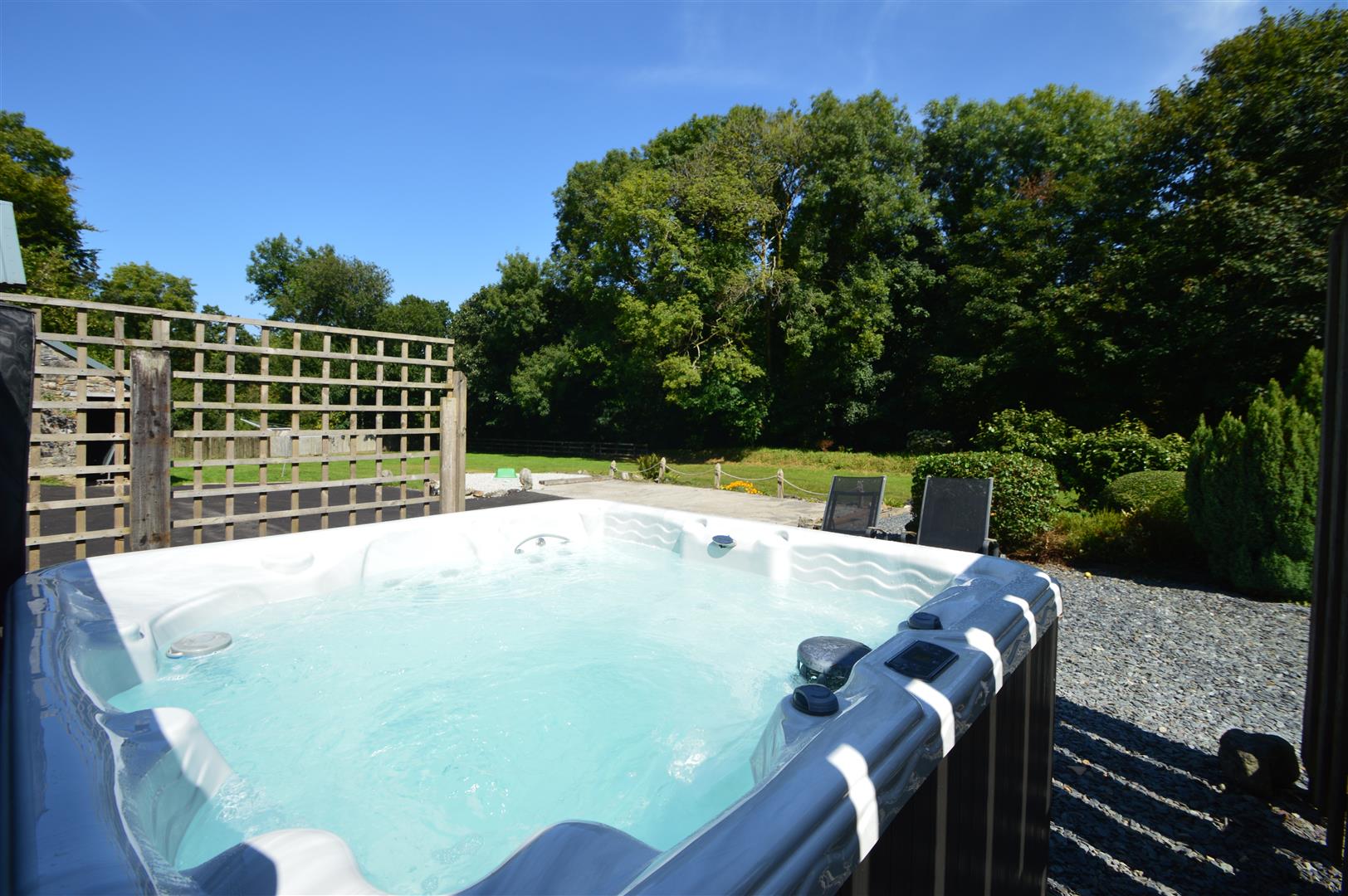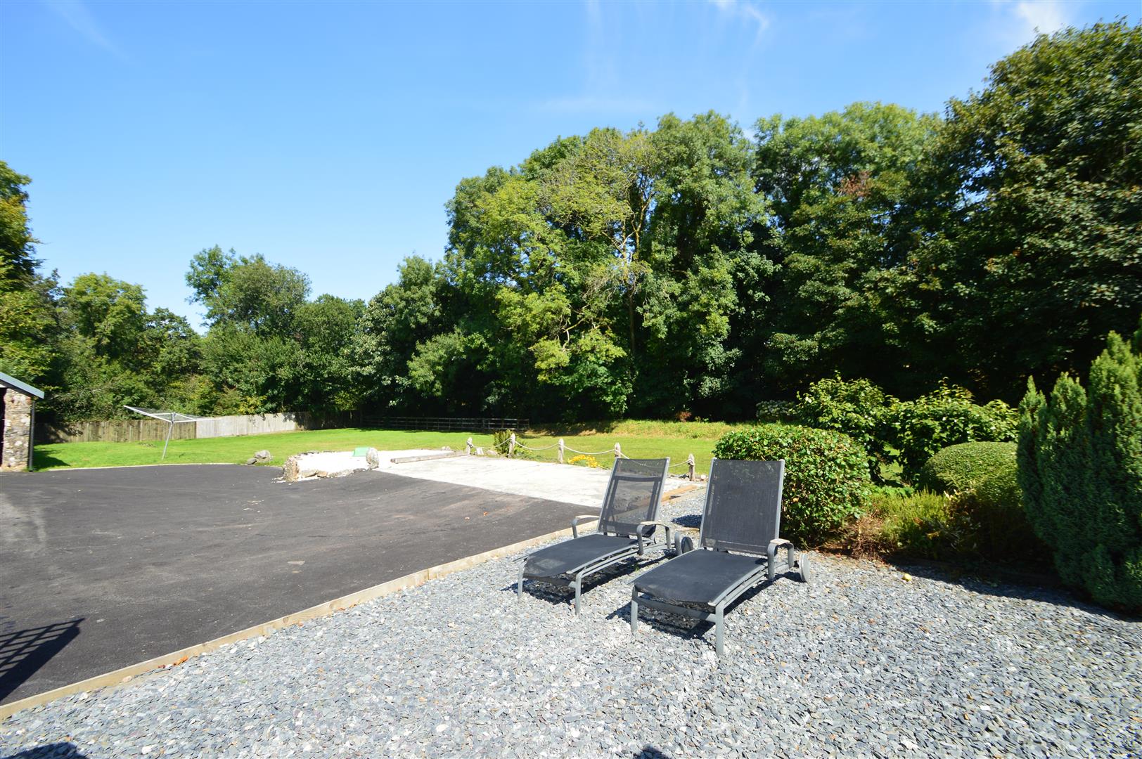 Garden - The property is accessed off a parish road through a gated entrance opening onto a tarmacadam drive leading past the house opening onto a large parking area to the side of the house and in front of the buildings. At the front of the house is a lawned terrace with a gravel seating area, hot tub and gravel path with flower beds stocked with a variety of flowering shrubs and trees.