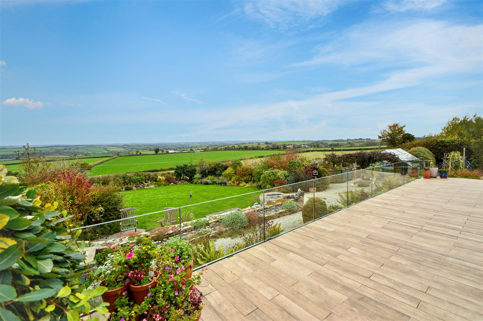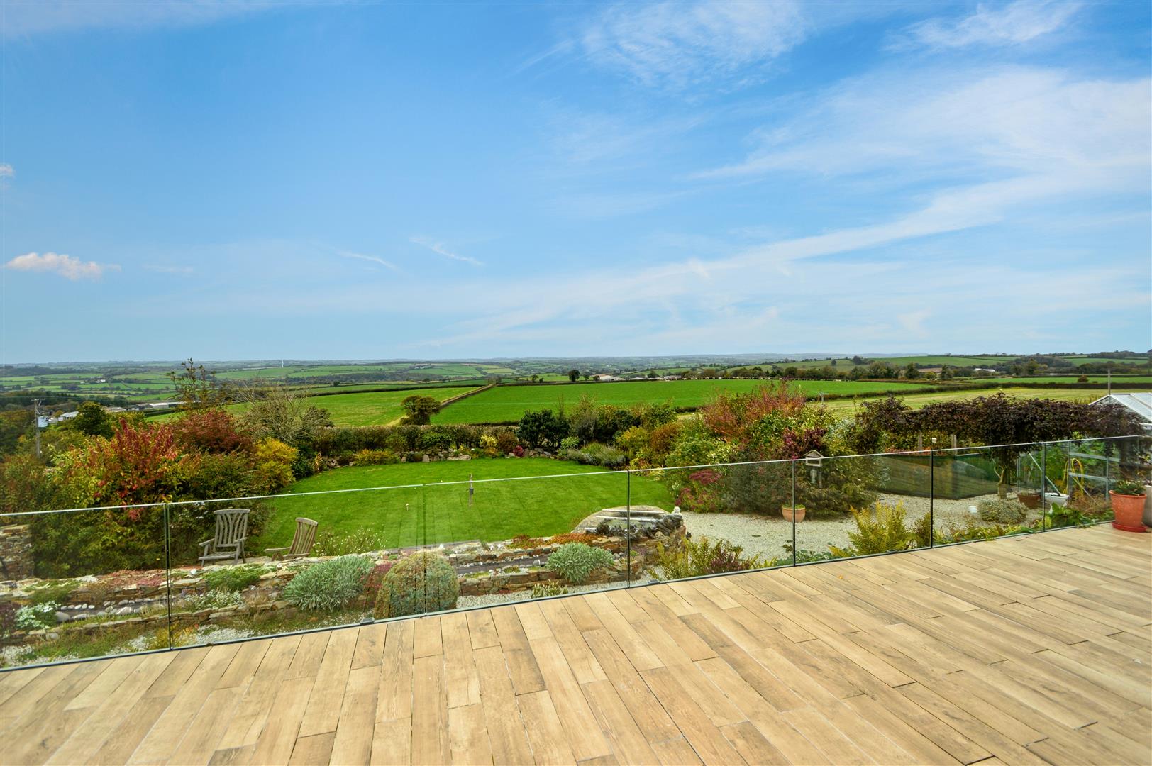 Downhayes was renovated 8 years ago providing spacious and flexible family living whilst maintaining its original character and charm, including feature fireplaces and exposed beams and the addition of a large garden room on the rear of the house which enjoys spectacular far reaching views over the surrounding countryside. The spacious and very well presented accommodation benefits from mainly uPVC double glazed windows, bifold powdered coated aluminium doors, oil fired central heating and briefly comprises: Entrance Porch, Utility Room; Fitted base units under black granite effect worksurfaces, stainless steel sink and drainer, space and plumbing for washing machine and tumble dryer and upright freezer, Grant boiler pressurised hot water tank (Solar & Heat Pump ready). Garden room, dining living Area; a triple aspect room, windows to the side and two pairs of bi-fold doors to the rear which open to let the outside in, whilst taken in the outstanding views. Tiled floor. Staircase rises to the first floor; Kitchen area; fitted wall and base units under Oak worksurfaces, stainless steel sink and drainer, built in dishwasher, space for American style fridge / freezer, inglenook fireplace housing the Everhot range cooker with 3 ovens, range style hob and 3 ring induction hob. Cloakroom area; coat hooks and shoe shelves, understair storage cupboard housing the manifold for the underfloor heating which is throughout the living / dining garden room, kitchen and wet room. Wet Room; tiled walls and Altro floor, shower, wash basin, bidet, w/c. Pantry; base units under black granite effect worksurface, stainless steel sink and drainer and slate flagstone floor. Entrance Hall; Front porch; Study / Snug; feature inglenook fireplace with original cloam bread oven, woodburning stove, beamed ceiling and window the front. Sitting Room; inglenook fireplace, cloam oven, Morso woodburning stove, beamed ceiling and windows to the front.