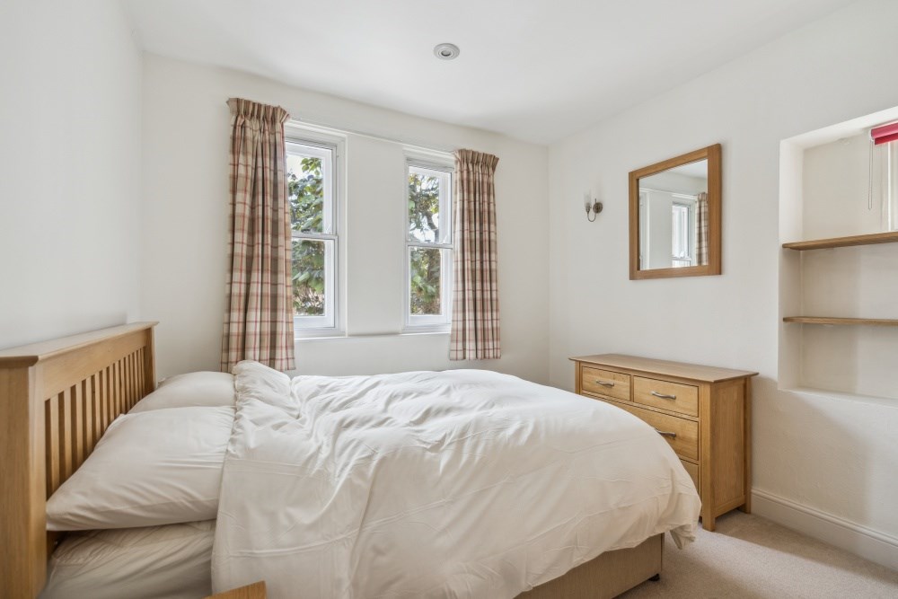 The master bedroom is dual aspect and is a comfortable double, offering sufficient space for relaxation and furniture.