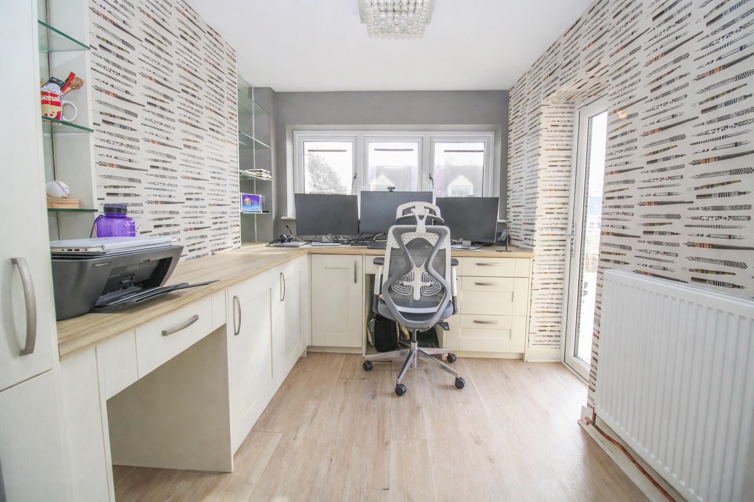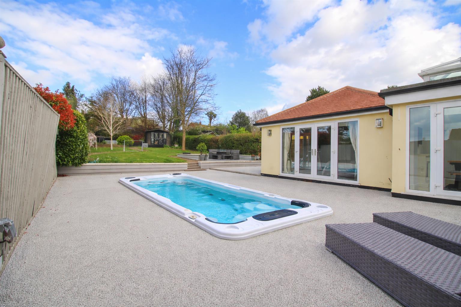 Located in this highly sought after road in Old Harlow, just a stones throw from the train station is this immaculately presented four/five bedroom detached family home with multiple reception rooms, a carriage driveway and a large rear garden. On the ground floor there are three separate living rooms, one of which is 22ft with a sky light and bi-fold doors, plus a stunning kitchen complete with a range of fitted wall and base units, an island, integrated appliances, a cooker tap and a sky light, which opens onto the bright breakfast room. There is also a beautiful dual aspect master bedroom, with a truly stunning en-suite with a heated mirror and bluetooth speaker, vaulted ceilings and a dressing room, a further family bathroom with a white three piece suite and separate shower, plus a utility room and office. Upstairs there are three double bedrooms, all of which have fitted wardrobes, plus an en-suite to one of them, as well as a beautiful, recently fitted family bathroom. Outside the rear garden is mainly laid to lawn, with a large patio, an integrated hydro swim spa pool and an outbuilding, with the carriage driveway to the front. Other benefits include a Hik CCTV system and Ajax alarm. Priory Avenue is found just off Old Road, just a few minutes walk from Old Harlow High Street, with excellent schools and open fields close by.