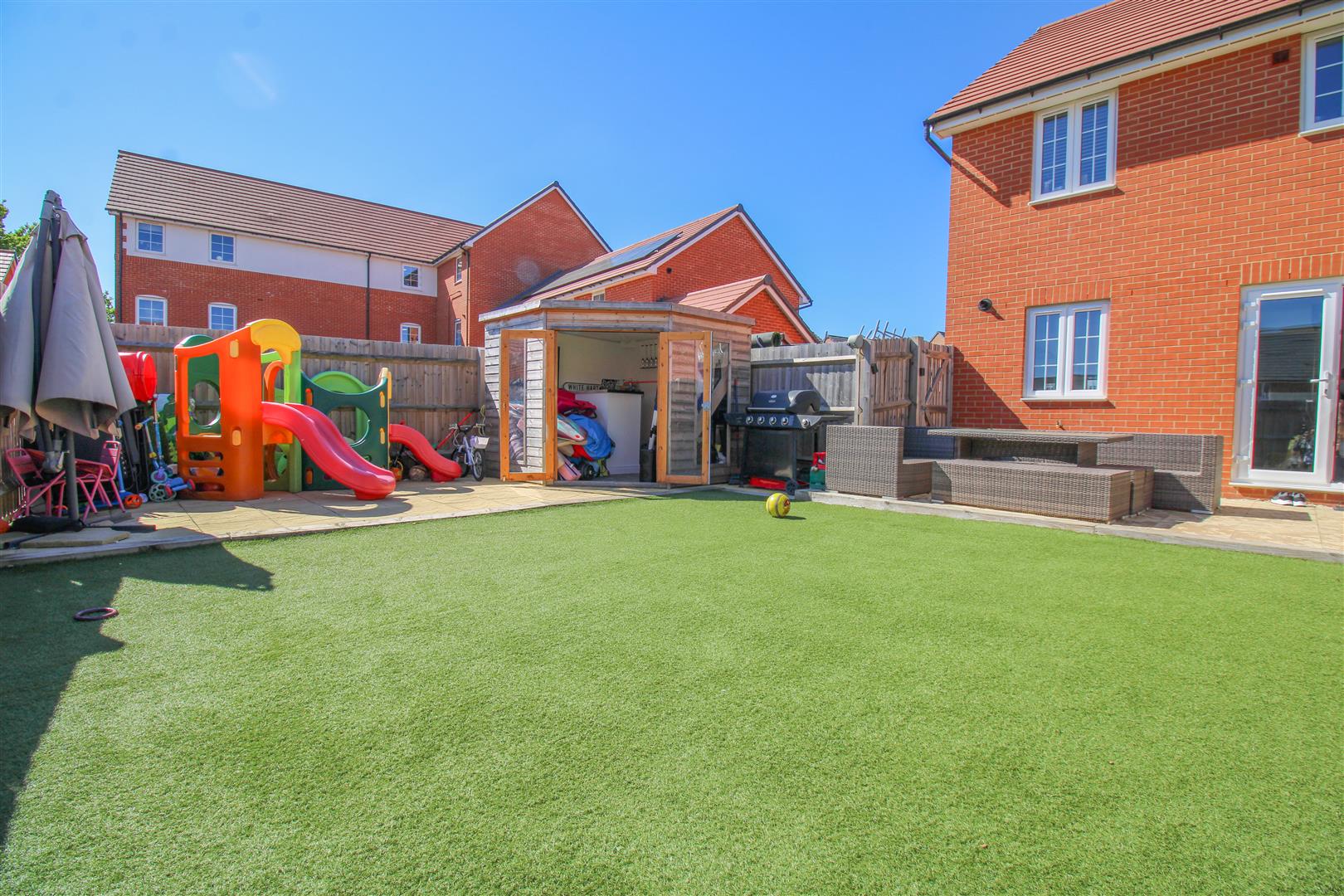 Located in the sought after development of Gilden Park is this immaculately presented three bedroom semi detached family home with a driveway for two cars. As you enter there is a hallway leading to a bright, dual aspect lounge, a modern kitchen/diner with a range of fitted wall and base units with integrated appliances and a cloakroom/WC. On the first floor there are three bedrooms, with an ensuite and fitted wardrobes to the master, plus a family bathroom with a tiled white three piece suite. Outside the rear garden is mainly laid to artificial lawn with a patio area, summer house and side access leading out to the driveway. Plover Crescent is located just off Old Oak Way, with local schools, shops and open fields within walking distance, as well as Harlow Mill Train Station and the new M11 junction 7A.
