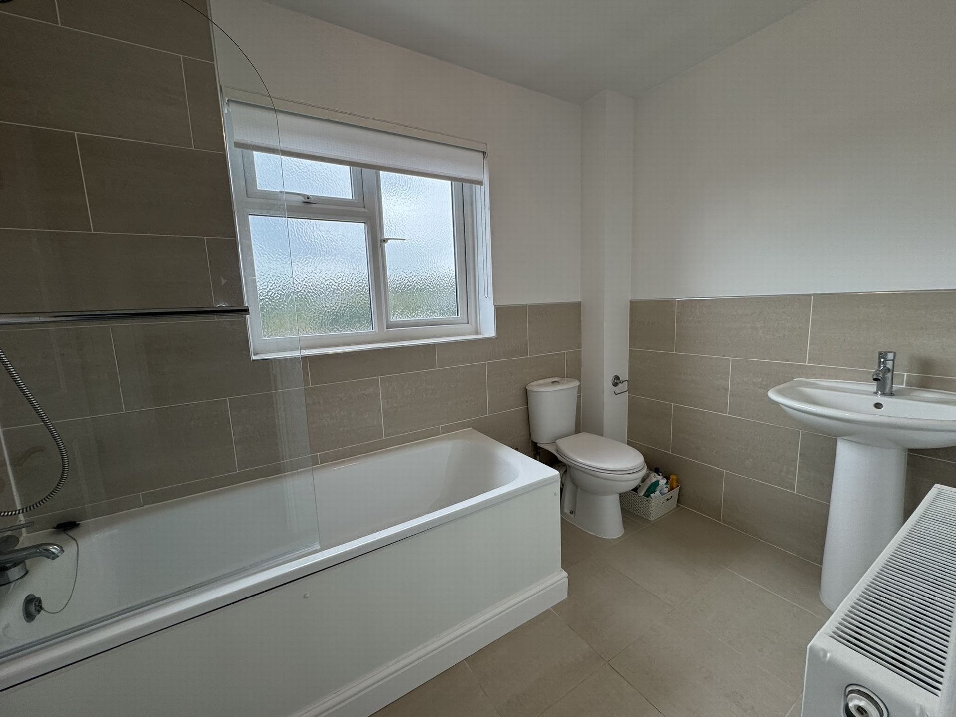 BATHROOM: Fitted with a modern white suite comprising panelled bath with shower over, pedestal wash hand basin with mixer tap, low level WC. Complimentary tiling, radiator, extractor fan, tiled floor, opaque double glazed window.
